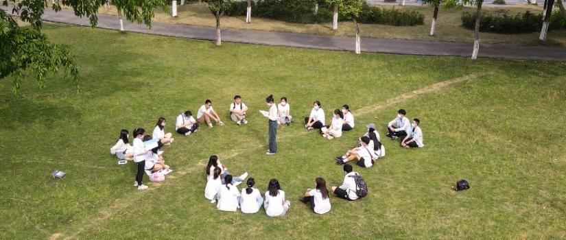 随后,大家来到室外,进行青春故事分享会。同学们围坐在后山的草坪上,共同聆听团干部代表们分享共青团的故事:肖小月同学讲述了中国共青团第一任书记俞秀松的英雄事迹,张琪同学结合自身经历分享了她参与团务工作的心得体会,王思敏同学则分享了她身边优秀团员的故事以及她的爷爷作为一名老党员对她的影响。听完这些故事,同学们收获颇多,也更加让大家体会到团的精神早已融入每一位团员的生活之中。