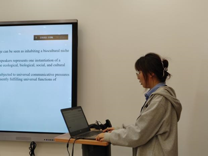 会议伊始,在康鑫副教授的组织下,参会人员按顺序进行了自我介绍,使团队及成员之间更加了解,为后续的合作共进共赢打下基础。随后2022级语言学硕士研究生王亚楠同学进行了文献阅读分享,2022级国际汉语教育硕士研究生张金茹汇报了“差点没”实证研究进展,2022级语言学硕士研究生齐俊丽进行了专著读书报告。