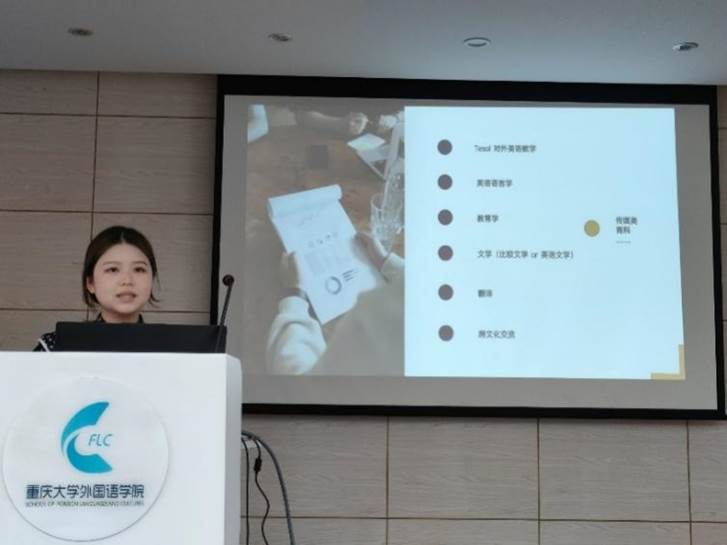 在日本东北大学留学的周禹彤同学讲解了前往日本留学的两种途径,即从研究生考到日本修士学位或者直接考修士。她以讲故事的口吻分享了自己是如何选择专业,如何确定自己具体研究方向和研究主题。她建议同学们可以通过研究项目训练或翻阅C刊找到感兴趣的研究主题,阅读大量文献后确定具体的研究方向。最后她鼓励日语系同学们在校期间要多与外教交流,培养语言能力;多参与日语竞赛,为留学做好充足的准备。
