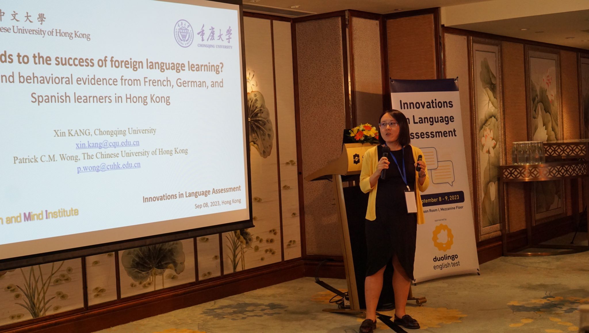 教师特聘教授康鑫博士受邀参加在香港举办的Innovations in Language Assessment会议并做了以“What leads to the success of foreign language learning? Genetic and behavioral evidence from French,German, and Spanish learners in Hong Kong”为题目的讲座。此次会议邀请了亚洲及其他地区的学者,共同探讨人工智能、机器学习等前沿发展对语言评估的影响。