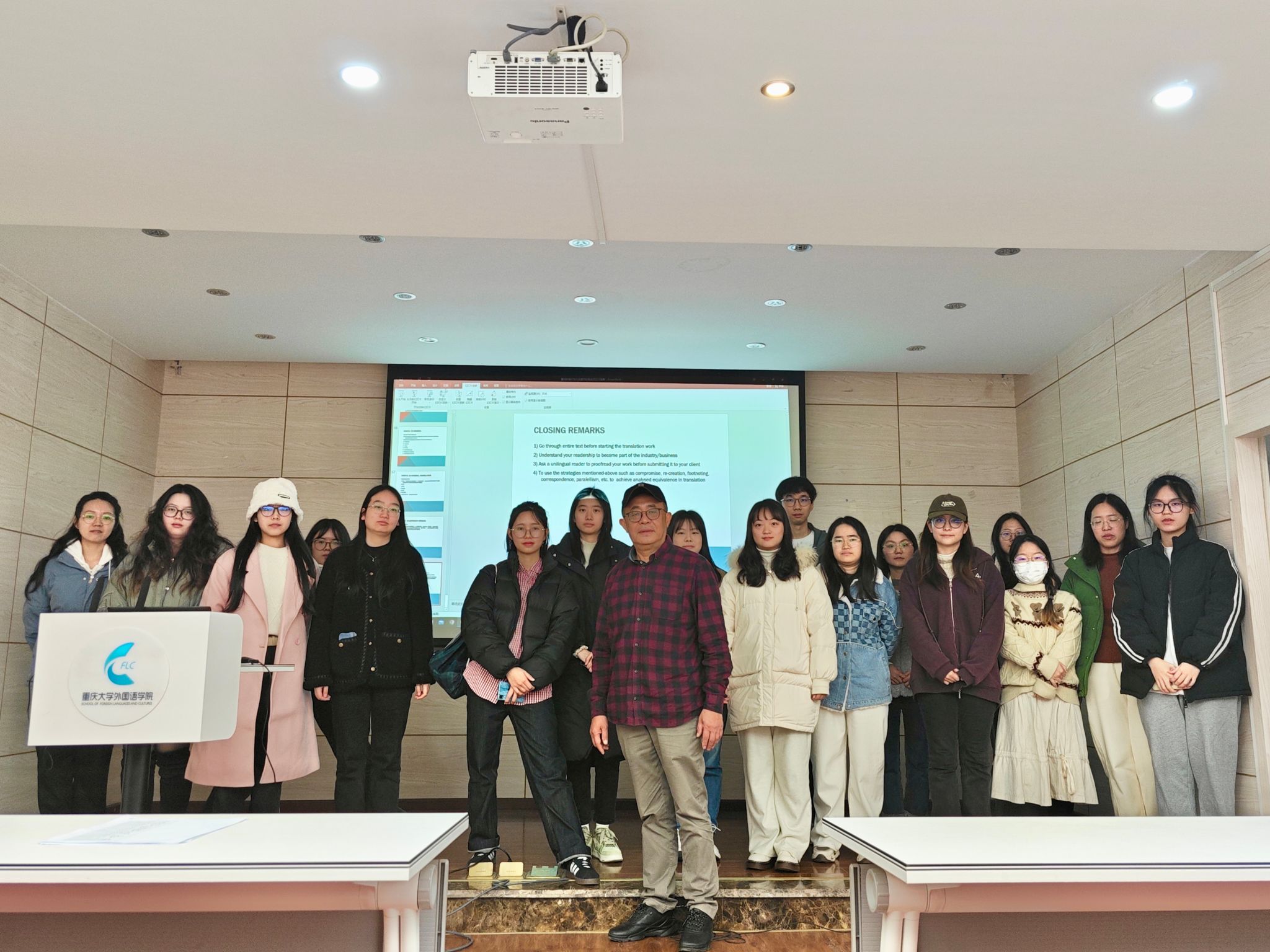 在讲座的尾声,孙教授强调了翻译不仅是语言技能的展现,更是跨文化沟通的桥梁。他的讲解不仅加深了学生们对翻译等价性的理解,也为他们未来的翻译实践提供了实用的指导和灵感。孙教授的深刻见解和丰富经验,将对2023级翻硕学生的翻译之旅产生深远的影响。