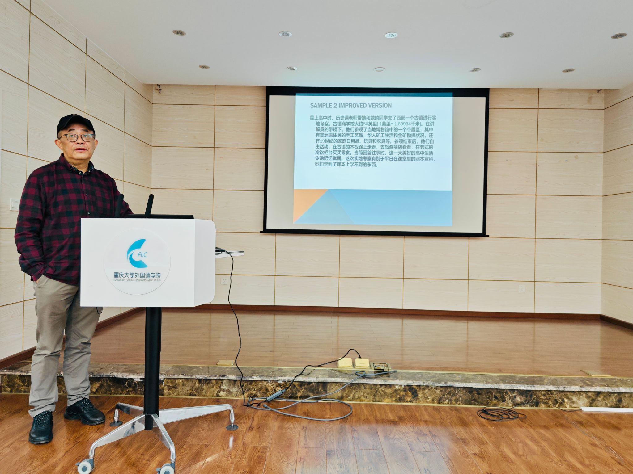 接着,孙教授深入探讨了语言准确性与文化适应性的平衡艺术。通过一系列精炼的译例分析与互动,孙教授阐述了如何在保持原文风味的同时,让译文与目标文化和语言要求相适应,做到准确、流畅与优美的统一。