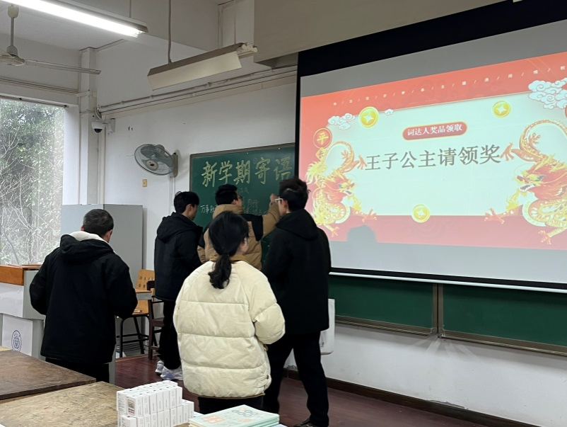 2024年2月29日下午,打卡活动的快闪颁奖仪式在虎溪校区综合楼DZ202成功举行。颁奖仪式由市课程思政示范课程资助,助教团队组织。助教们为同学们精心挑选了活动纪念品并用心布置了颁奖活动现场。