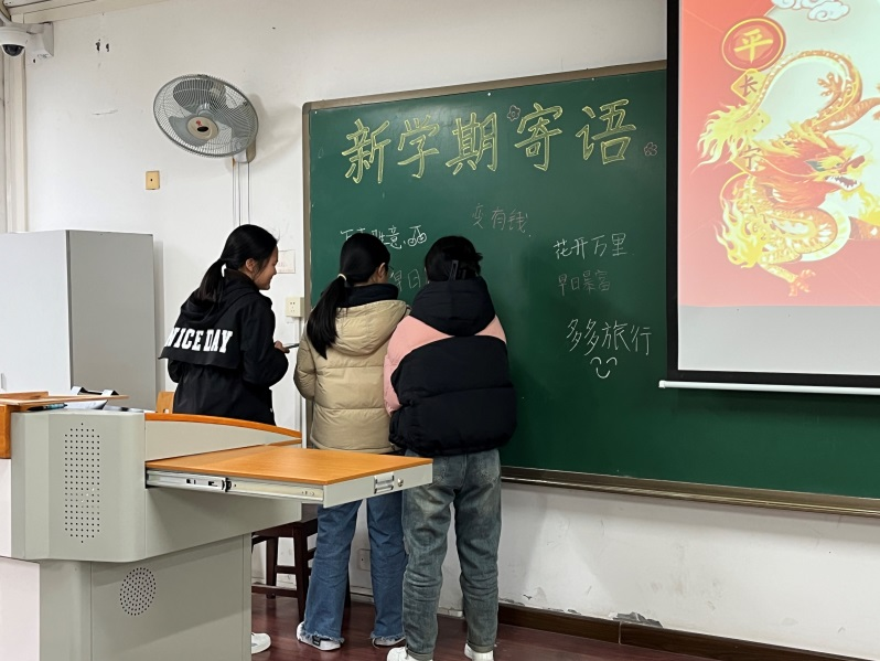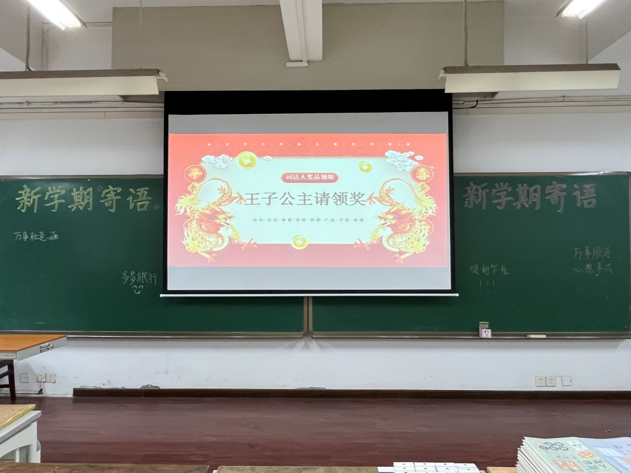 颁奖活动伊始,同学们相约来到活动现场,有序进行签到、领奖及合影留念。与此同时,同学们还在黑板上留下了自己对新学期的寄语,激励自己新学期,新气象;新起点,新希望。