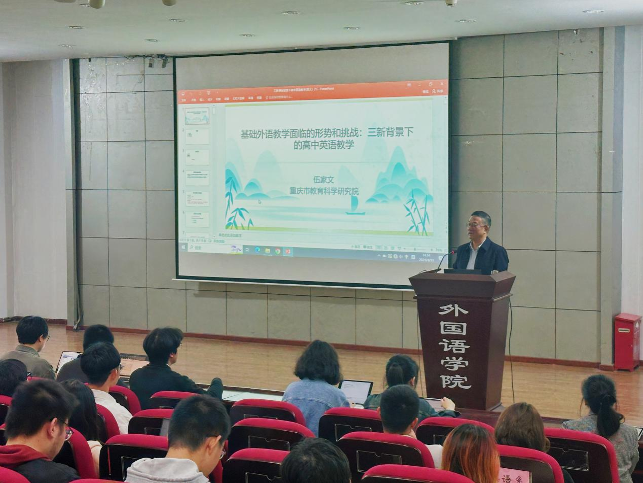 楼多功能厅开展了“名师讲坛”系列活动——基础外语教学面临的形势与挑战:三新背景下的外语教学研究讲座。讲座邀请了重庆市教育科学研究院高中英语教研员伍家文教授主讲,由*18漫画