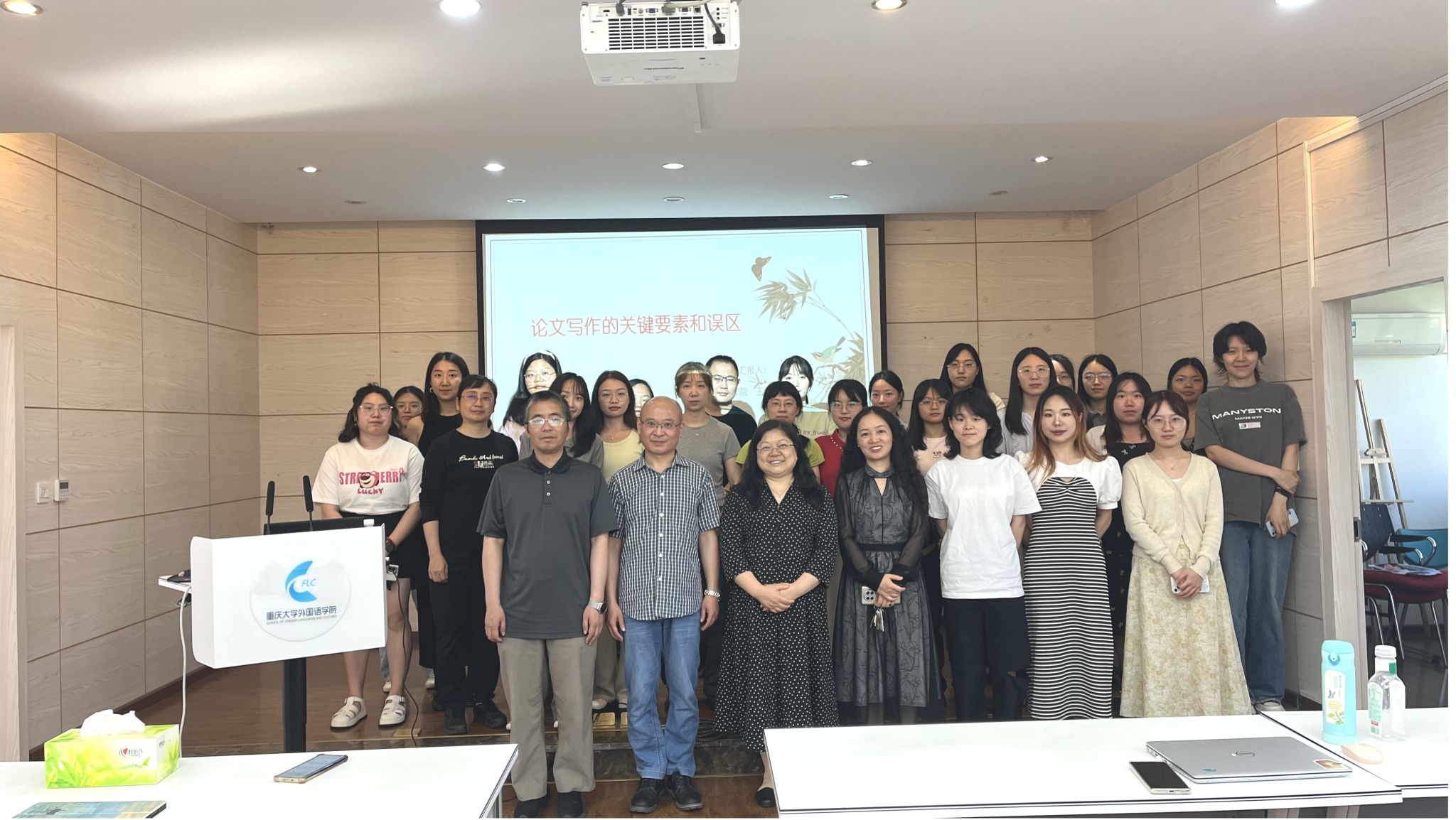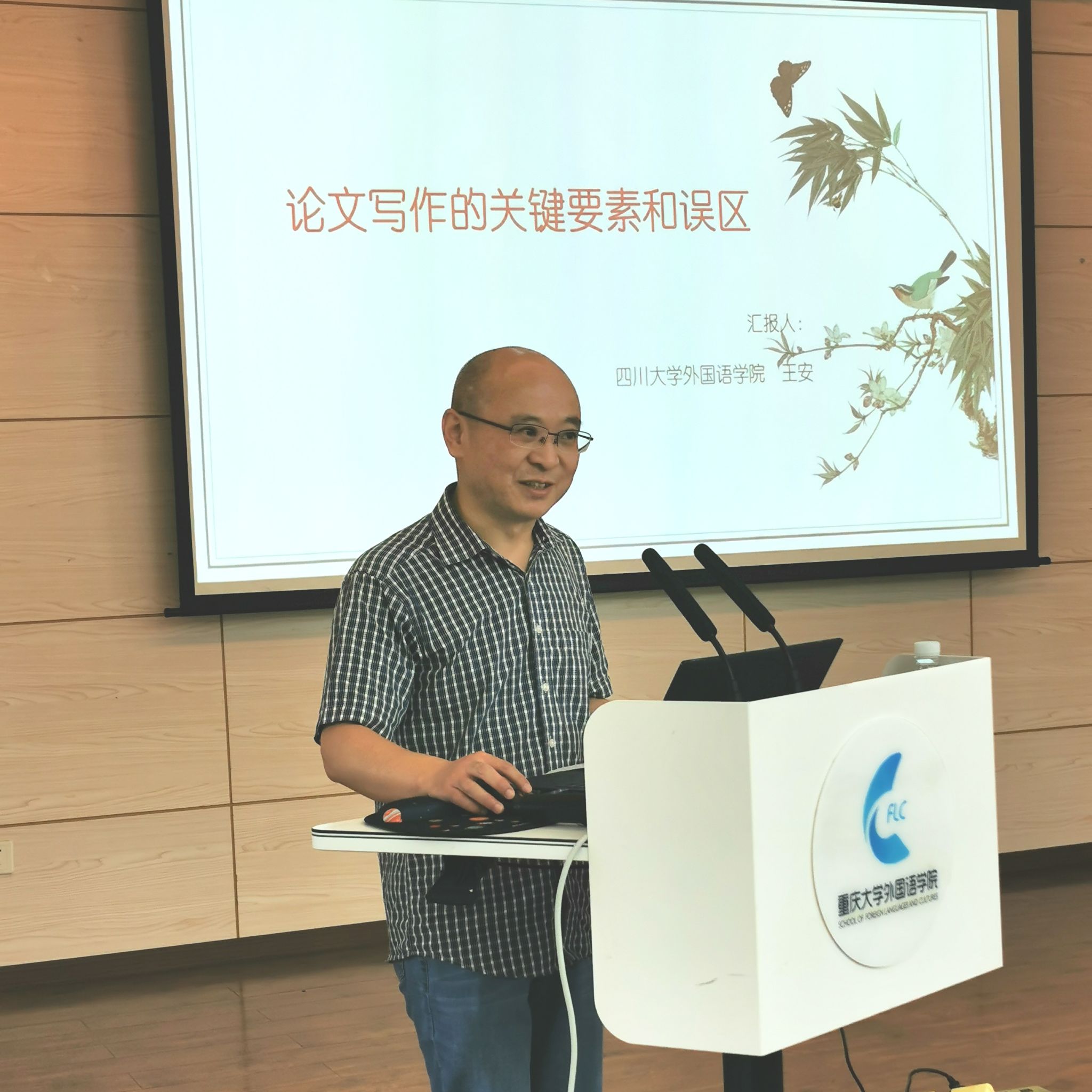 在501报告厅举行了“青年教师学术沙龙”第一期活动。本次沙龙的主讲人为四川大学王安教授,主题为“论文写作的关键要素和误区”,主持人为学院英语系主任毛凌滢。参加本次沙龙的人员有英语语言文学方向本科生、硕博研究生和英语系教师。