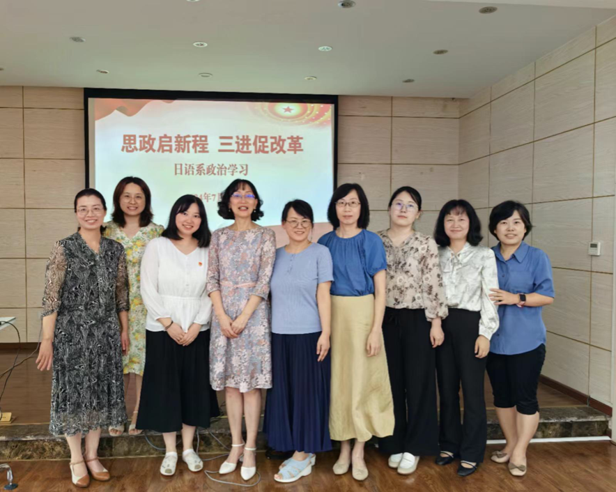 7月4日,日语系日语语言教育教研室和日语文学文化教研室的全体成员在参加完“思政领航启新程,三进深化促改革”主题党日活动与教职工政治学习活动之后,在学院205会议室围绕“三进”工作的开展思路与方法进行了热烈的讨论。与会老师们围绕莫启扬院长所做的《增强文化自信,深化三进教育》专题报告,以及各专业教师的精彩分享,交流了各自的学习心得。多位老师表示,获得了将《理解当代中国》系列教材有机融入专业课程教学的新思路,更有信心在教学中帮助学生增强文化自信、道路自信,更好地理解文明互鉴。