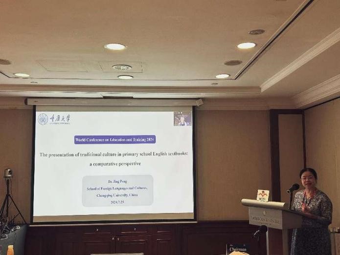 彭静教授受邀参加了此次会议,并在“Childhood Education and Elementary Education”主题论坛上做了发言,发言的题目是The presentation of traditional culture in primary school English textbooks: a comparative perspective,是中央高校基金项目(2024CDJSKPT09)的阶段性成果。本话题以全球教育改革的浪潮为背景,引入中国与日本新一轮基于教育核心素养的课程改革,围绕中日两国在新课程标准指导下新版小学英语教材中传统文化呈现进行了比较研究。通过比较发现,现有的研究多聚焦于文化内容而忽视呈现方式,本次发言展示了中日小学英语教材文化呈现的内容与方式的优势与不足,并提出了坚持中国视角、兼顾国际视角、丰富隐性活动、借助母语辅助等建议,为中小学英语教材的建设提供了宝贵的参考。2023级研究生黄璇做了海报展示,也得到与会专家们的好评。