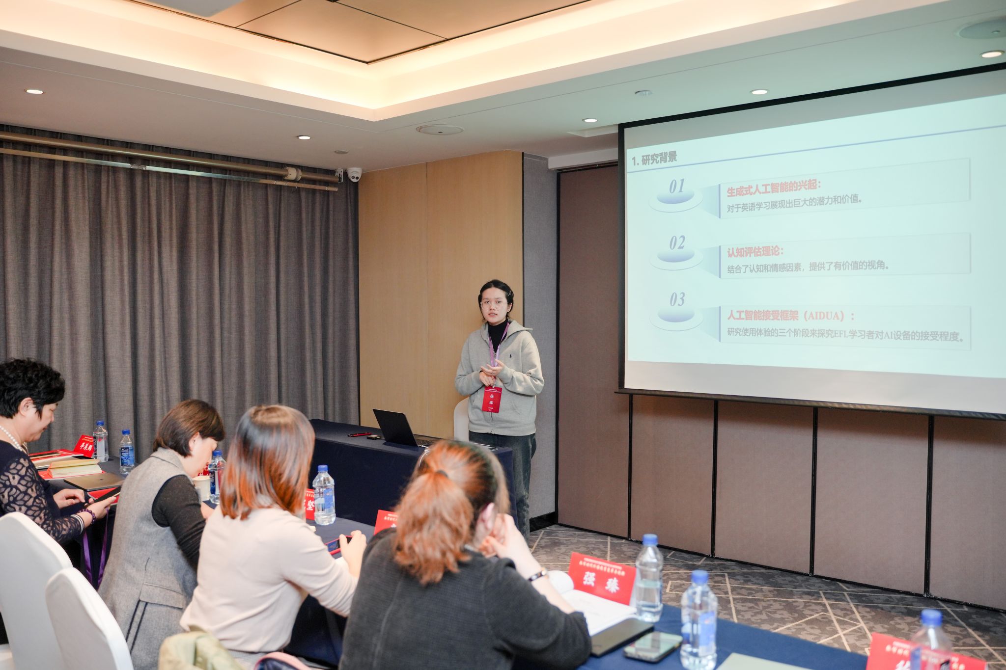 何欣忆老师指导的24级教育学硕士徐璐同学在“人工智能辅助外语教育研究”分论坛宣读了其研究论文“中国EFL学习者对生成式人工智能的接受度:基于AIDUA模型的研究”,深入探讨了英语作为外语学习者在使用生成式人工智能技术时的接受度和使用意愿,为理解EFL学习者如何与人工智能技术互动提供了宝贵的数据支持,论文发言获得了与会代表的好评。