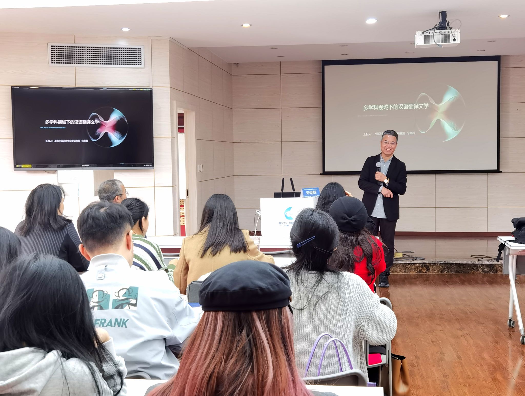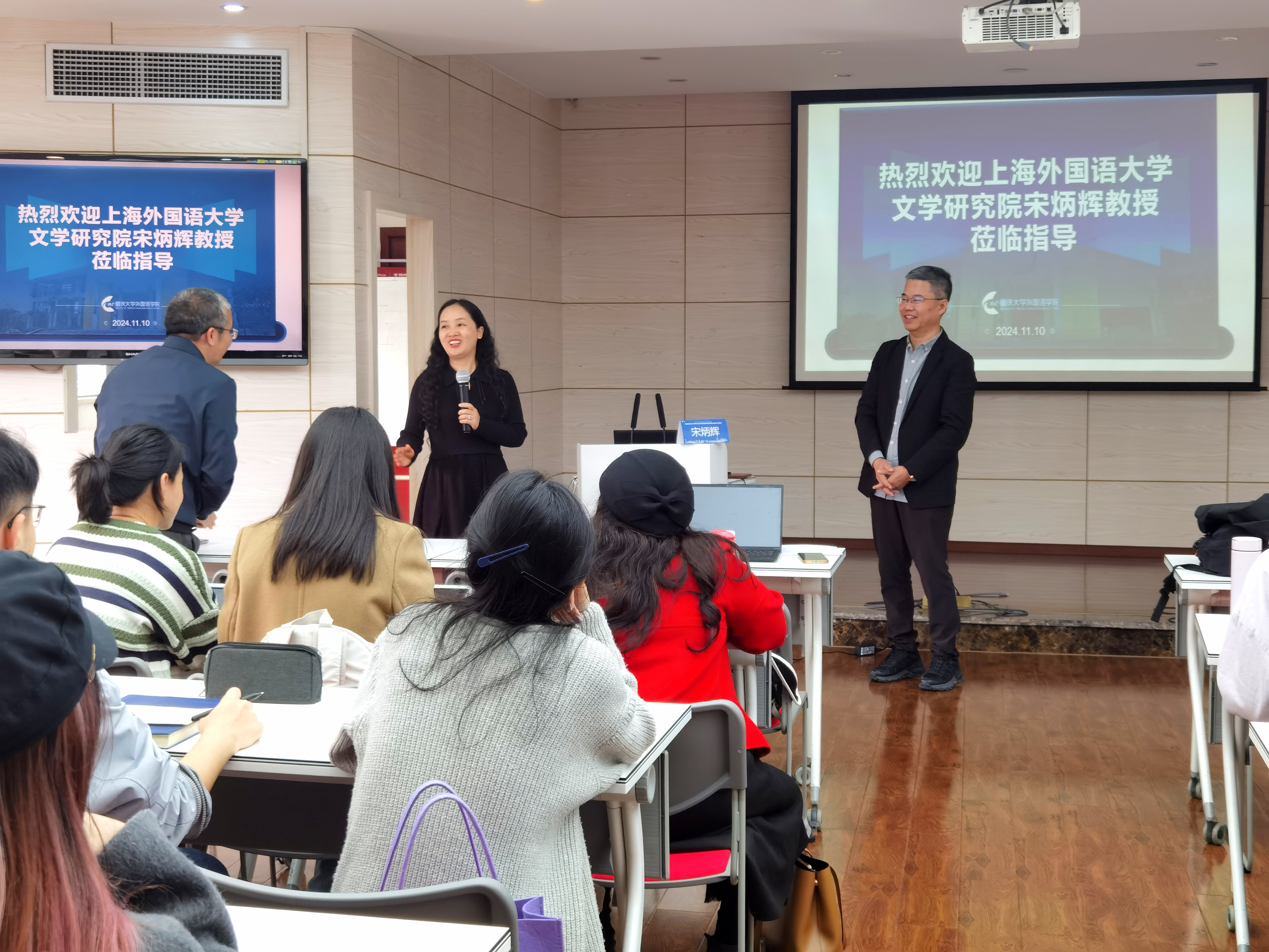 师生进行了题为《汉语翻译文学的多学科视域》的学术讲座。宋教授主要从事比较文学、中外文学关系研究,以及汉语翻译文学研究,是《中国比较文学》的主编,中国比较文学学会副会长。本次讲座由李玲教授主持,李永毅教授、毛凌滢教授、余泽梅副教授以及学院一众本科生及研究生参加了讲座。
