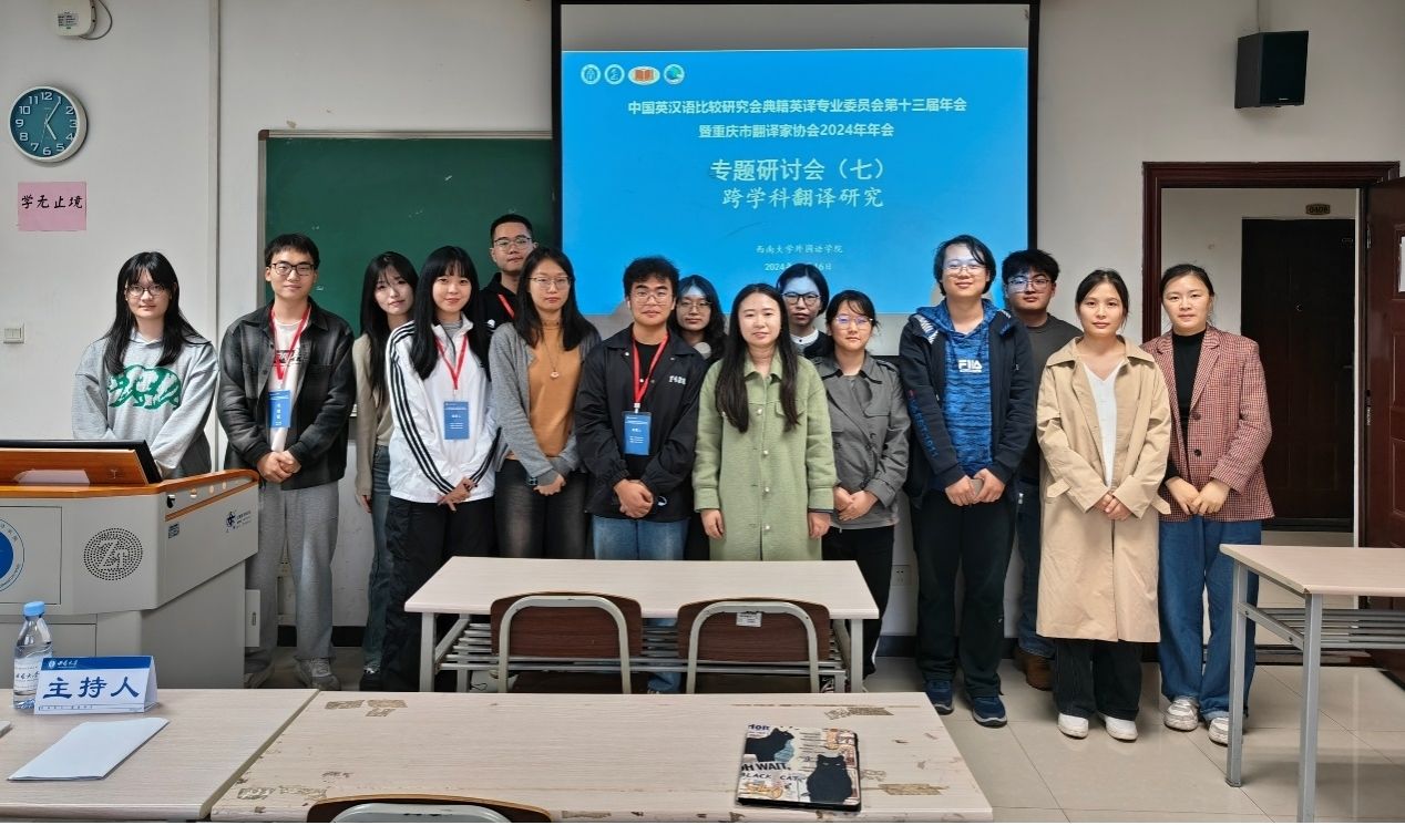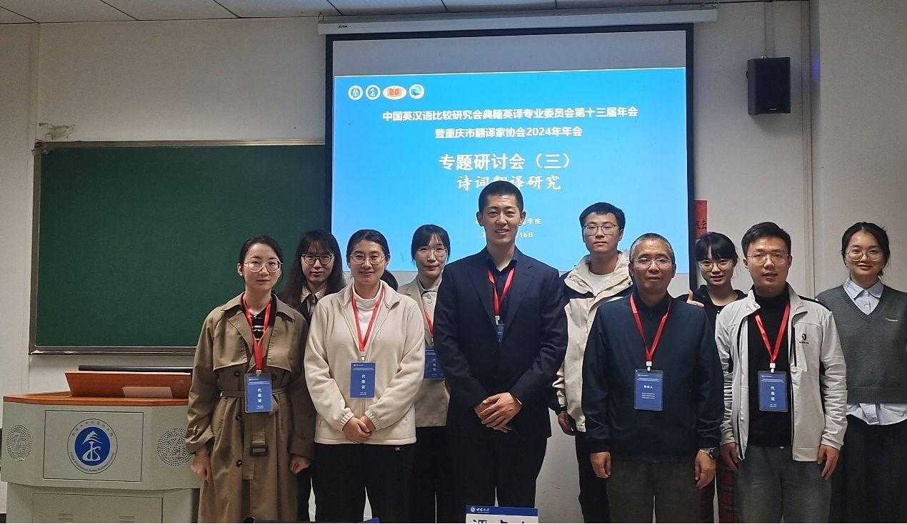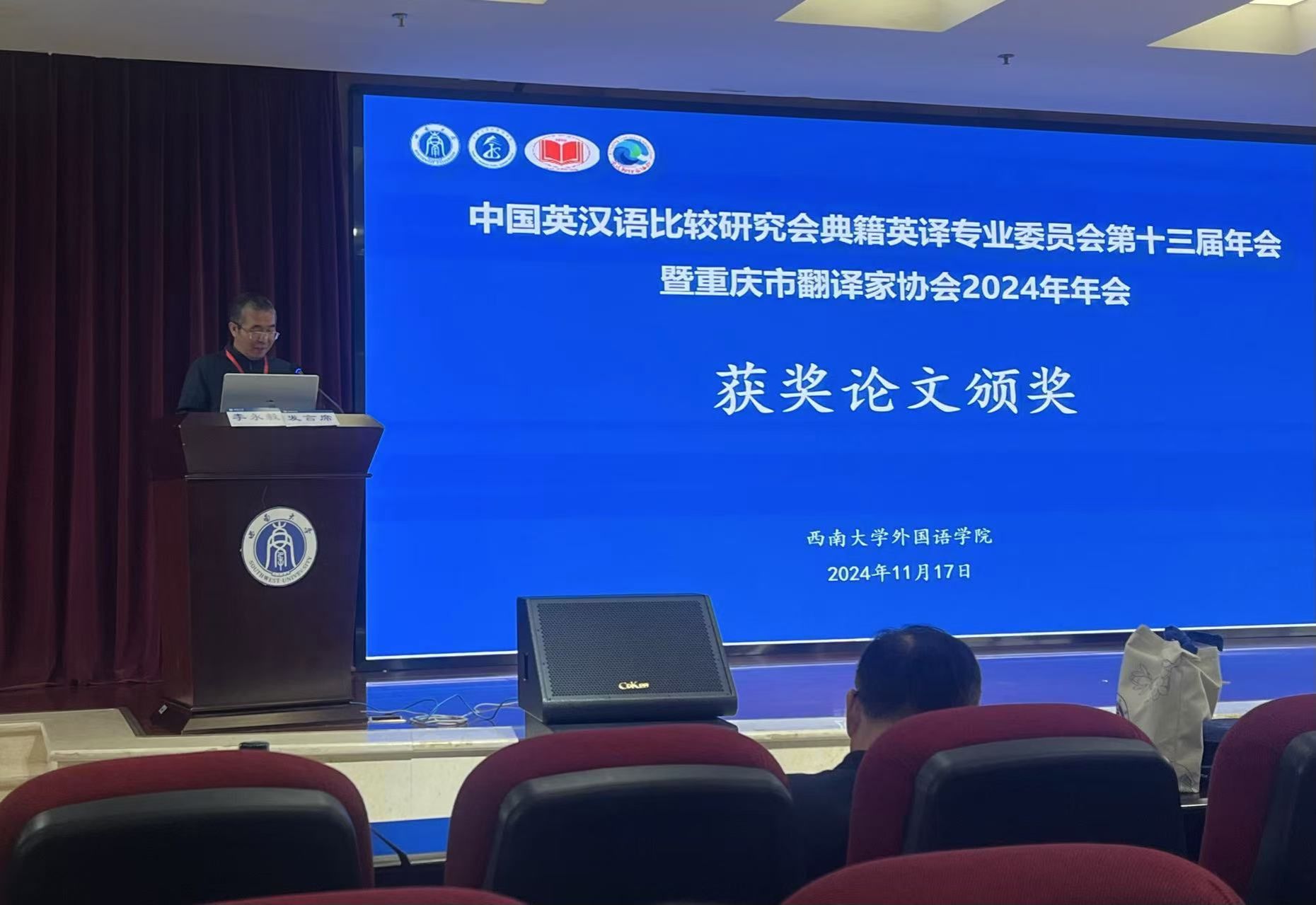 在参会教师中,李永毅教授与陶叶茂博士分别担任专题研讨会(三)“诗词翻译研究”和专题研讨会(七)“跨学科翻译研究”的评点人。同时,李永毅教授作为重庆市翻译家协会副会长,在会议中宣读了获奖名单。在大会汇报环节,陶叶茂博士对专题研讨会(七)的研讨情况进行总结,概述了这一研讨会的关键论点和学术贡献。此外,路斯琪博士的论文“《道德经》在法国十九世纪下半叶的传播与影响研究”深入探讨了“道”概念谱系在欧洲的生成,荣膺年会三等奖。