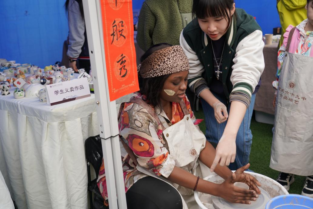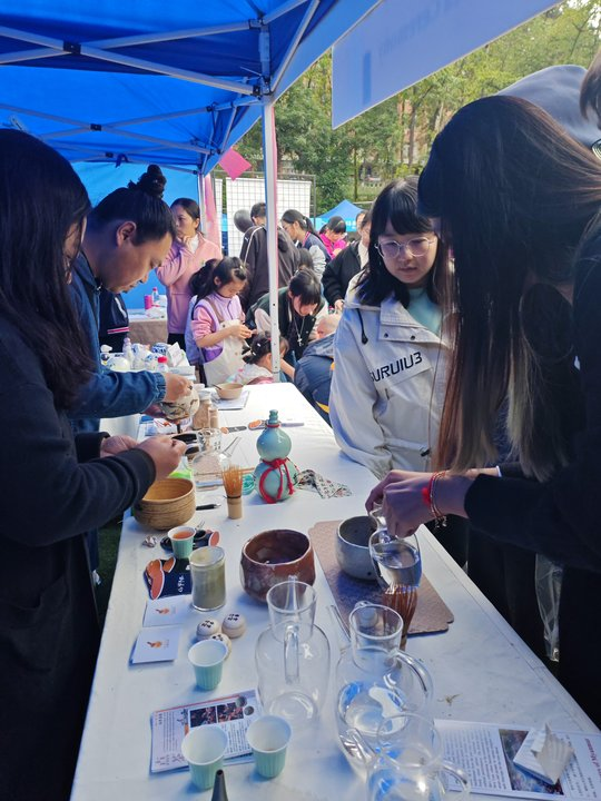 磁器展示与体验活动由“中国文化交流实践基地”重庆市第六十九中学磁艺工作坊教师精心策划。该展台不仅带来了精美的磁器作品,还让前来观赏的中外师生沉浸式体验了磁器的制作过程,丰富了大家对中国磁器的了解。