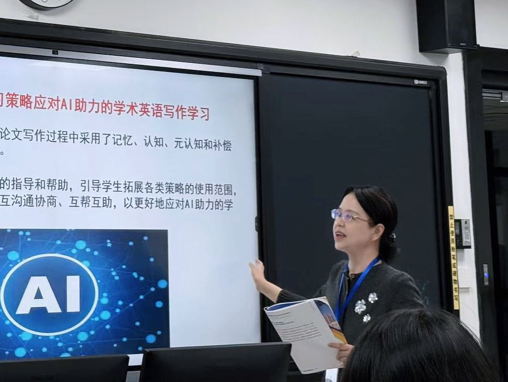 周梅教授在分组发言平行论坛宣读论文“生成式AI助力研究生学术论文写作的个案研究及教学启示”。本研究依据扎根理论的基本原则,对一名一流高校研究生的访谈和叙事性日志数据进行质性分析并据此对数智时代的学术英语写作教学和课程设置提出了切实可行的改进措施。该研究得到与会专家学者的一致好评。