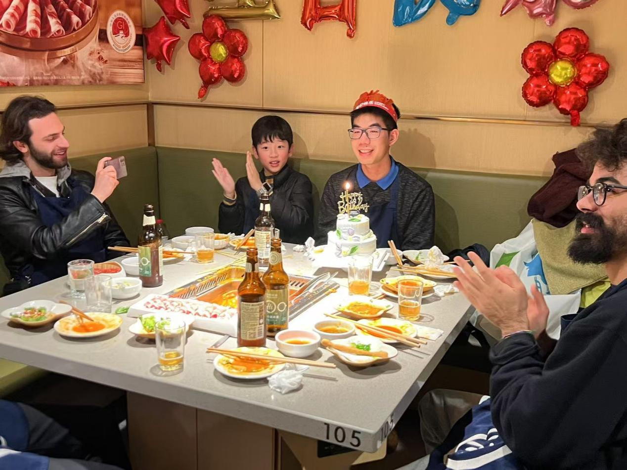 值得一提的是,11月27日,冬令营还发生了一段温馨的插曲。当天是意大利学生陈舒琦的生日,学院特意为他准备了蛋糕,国际中文教育系学生赠送了剪纸和书法作品作为生日礼物,体现了中意两国人民之间的友好关系。