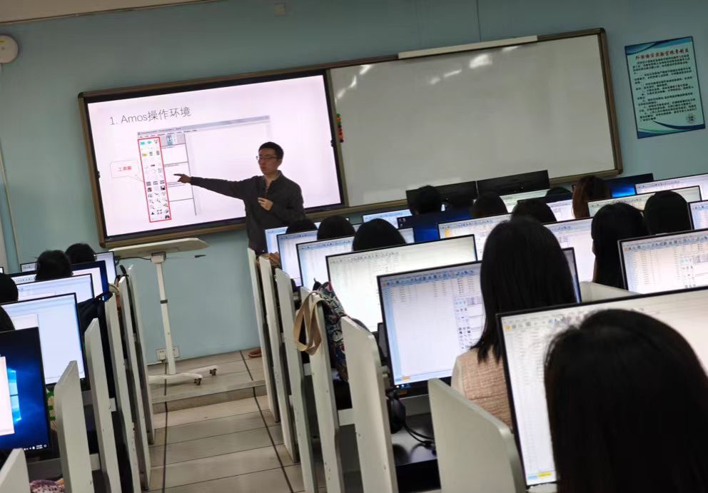 第二场讲座为“基于AMOS的结构方程模型建模与评估”。讲座以理论讲授和上机操作结合的方式进行。肖老师按照结构方程建模的基本步骤,依次讲解了AMOS的操作环境、建立和绘制模型图、数据读入、基础数据检验、模型分析参数设定、输出结果解读和模型修正,并以真实数据案例现场演示。每一步骤演示之后,肖老师现场指导学员的实际操作,解答学员在操作过程中的各种问题。最后,肖老师结合自身使用结构方程模型的经历与体会,鼓励大家积极利用这一先进的技术手段开展外语教学研究。