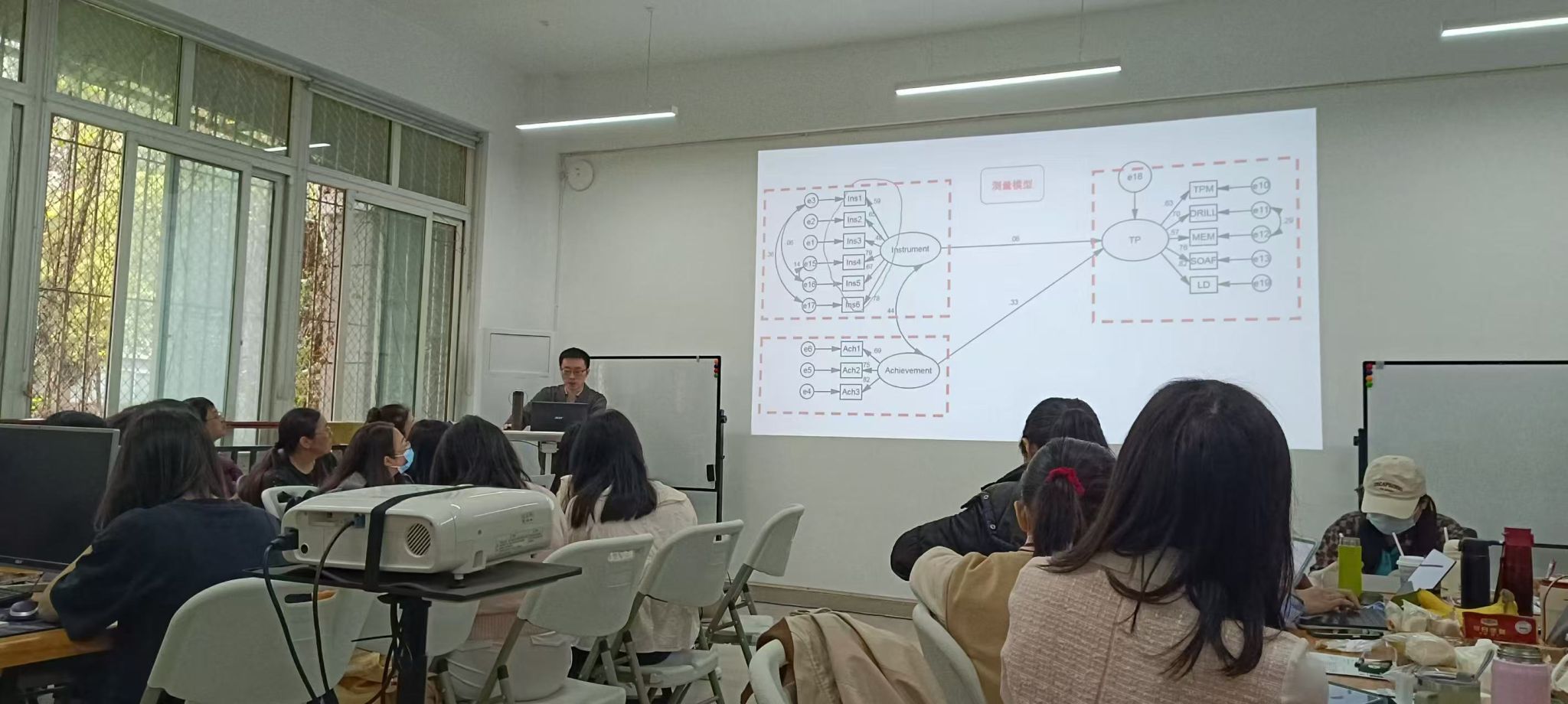 博士生导师、语言认知及语言应用研究基地专职研究员肖巍教授在成都锦城学院作了关于结构方程模型的系列讲座。讲座由通识教育学院文举副院长主持。来自成都多所高校的50余名教师参加了此次讲座。