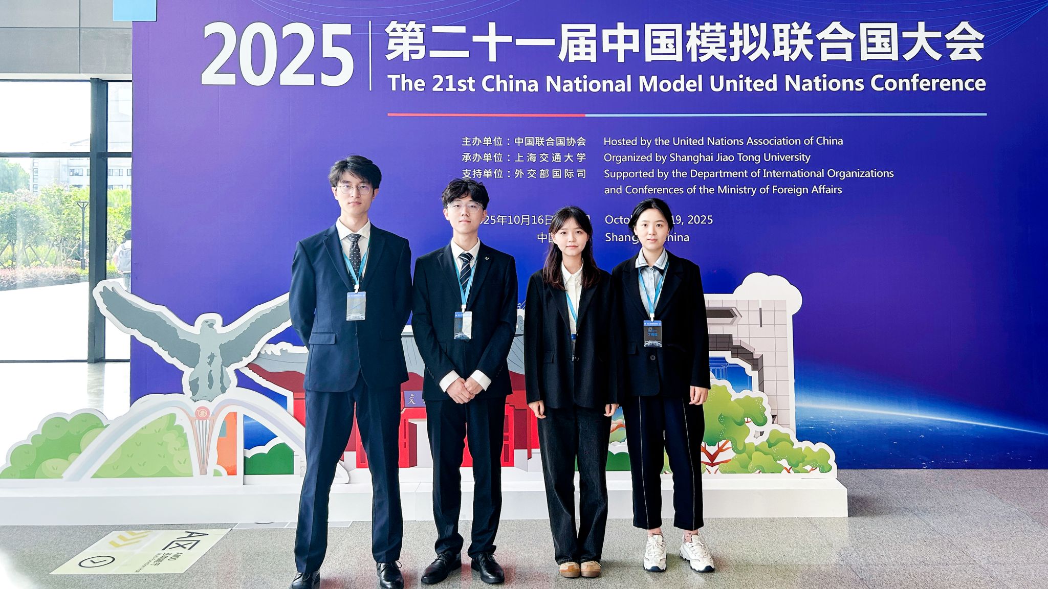 2025年10月16日至10月19日,第二十一届中国模拟联合国大会在上海交通大学闵行校区召开,18漫画 代表团由*18漫画 2023级英语专业本科生王瑞、丁雨暄,美视电影学院2023级播音与主持艺术专业本科生郭子谦和光电工程学院2024级测控技术与仪器专业本科生关宇皓4位同学组成,经过四天的紧张会期,丁雨暄获得Outstanding Delegate(杰出表现奖),郭子谦、关宇皓获得Most Potential Delegate(最具潜力奖)。