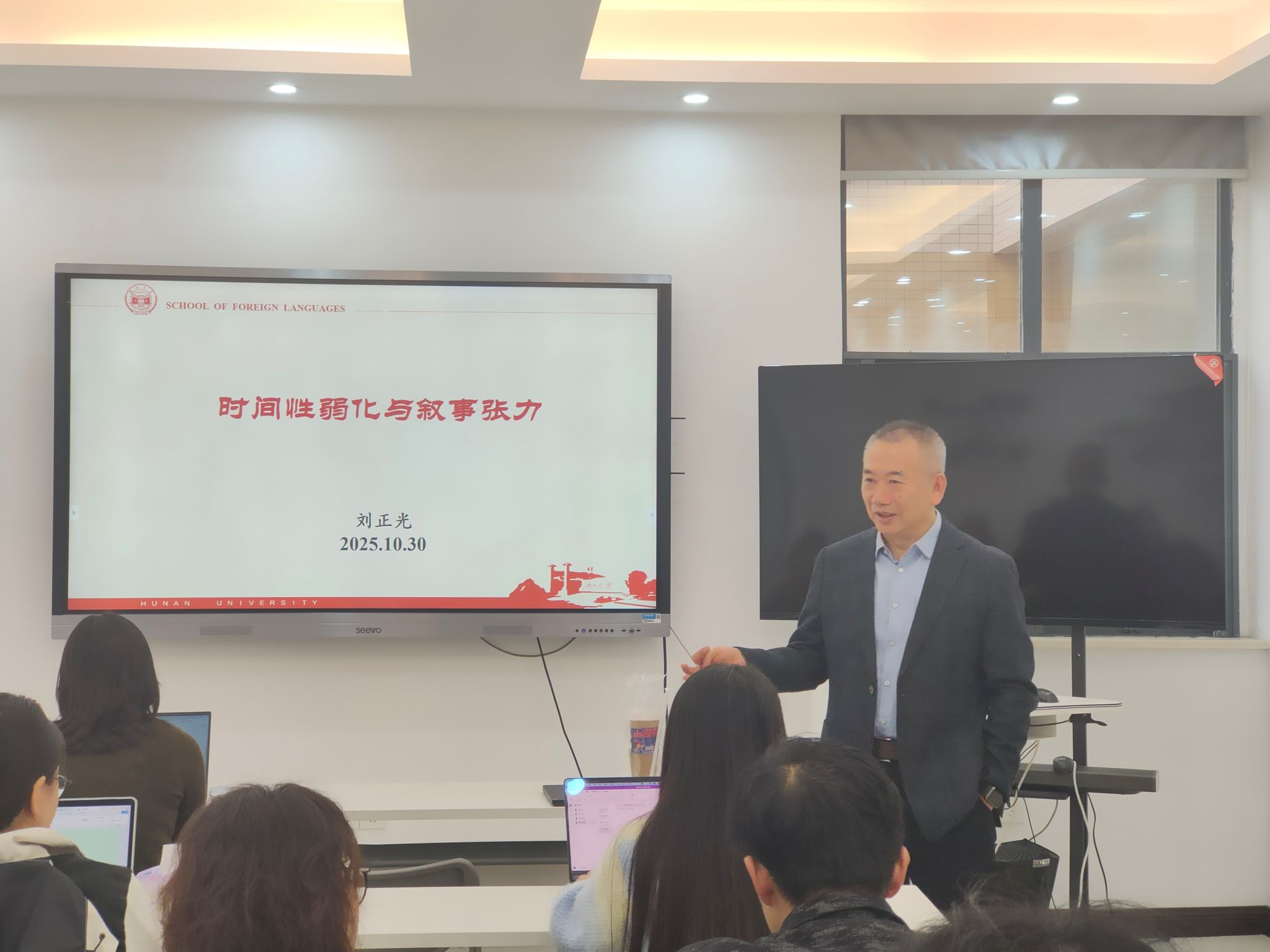 2025年10月30日上午,湖南大学刘正光教授应邀在UC联合学院楼422会议室作了主题为“时间性弱化与叙事张力”的学术讲座。报告由18漫画