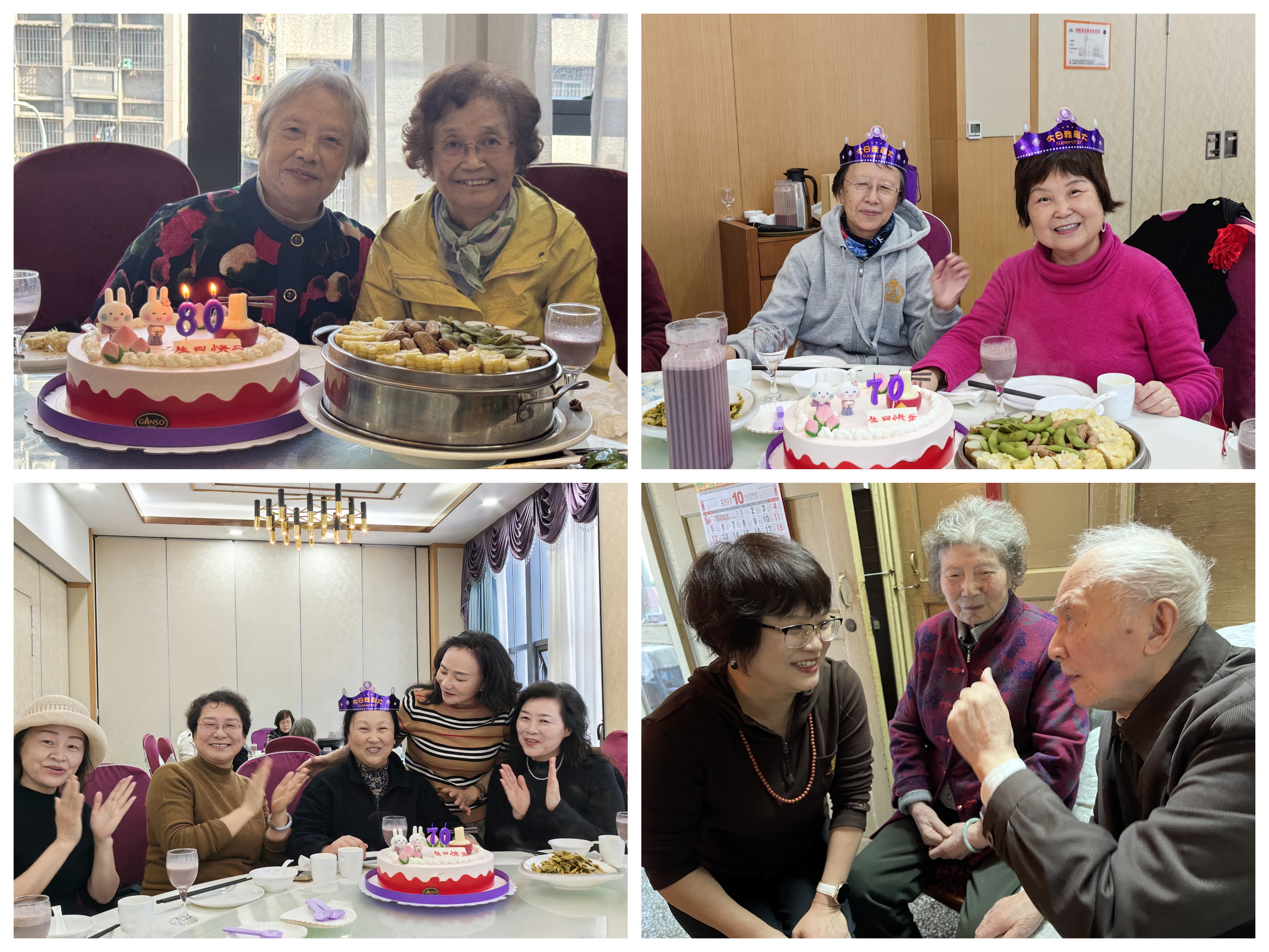 会上,学院党政班子成员、工会委员与40余位离退休教职工欢聚一堂。党委书记李小辉代表学院向老同志们致以节日问候,介绍新任职的班子成员。并详细汇报了学院近期在教学、科研等领域取得的成就,同时希望老同志们能继续关心、支持学院发展,为各项事业建言献策。随后,现场点燃生日蜡烛、唱响《生日快乐》歌,全场人员为2025年年满90周岁、80周岁、70周岁的老同志集体祝寿,传递学院对老同志们的真挚祝福。老同志们欢聚一堂、话旧叙新、抚今追昔,还共同合影留念,整个座谈会始终洋溢着欢声笑语,氛围温馨和谐。会后,班子成员和工会委员分组走访了几位不方便到会场的高龄老人。