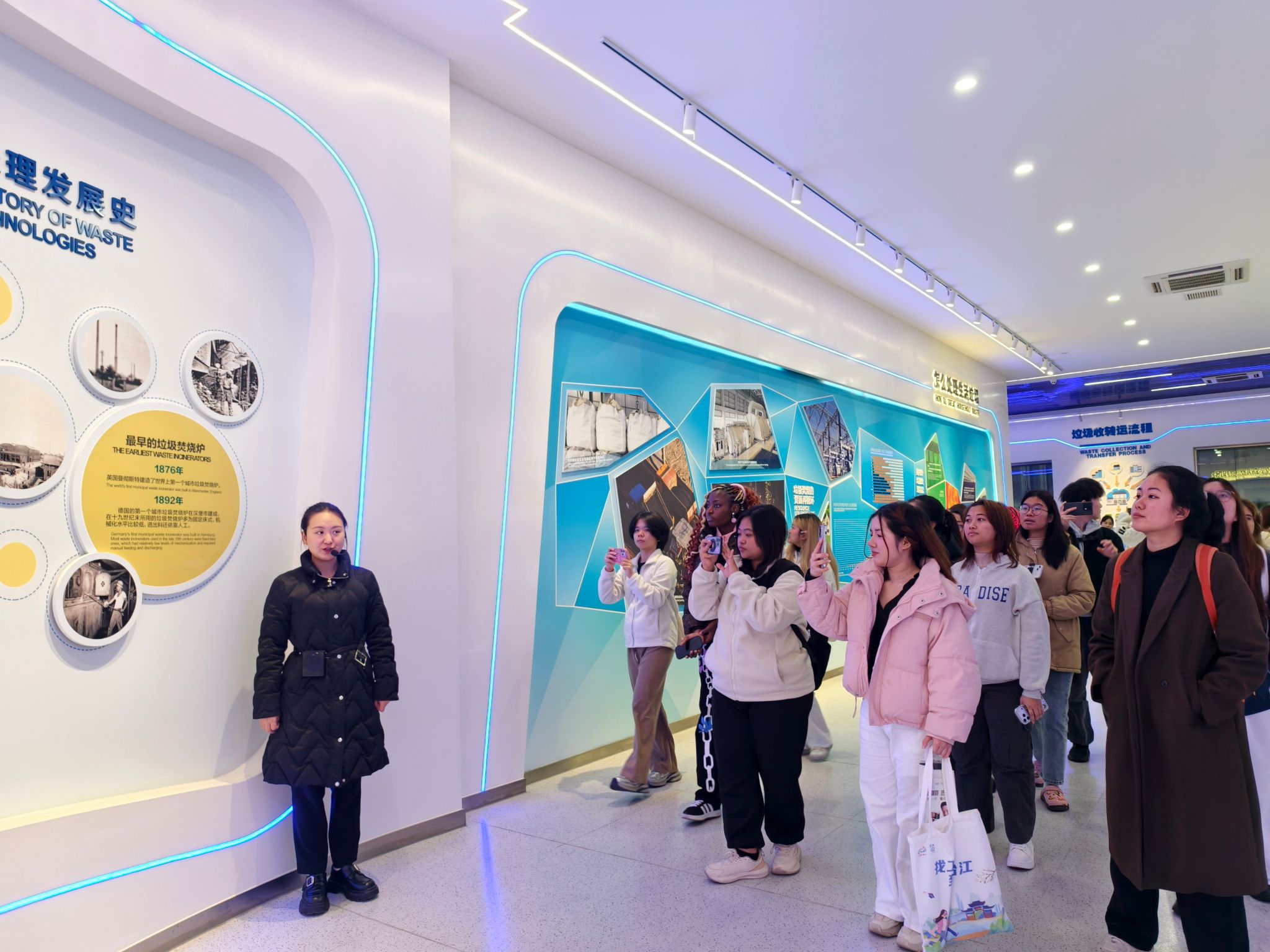 在公司专业讲解员的引导下,留学生通过模型、图片、多媒体视频等媒介系统了解了城市垃圾转化为电力资源的全过程,特别是对通过焚烧垃圾产出电能,实现垃圾减量化、资源化与无害化,且关键排放指标优于欧盟标准10%以上等问题,留学生们表现出浓厚的兴趣。