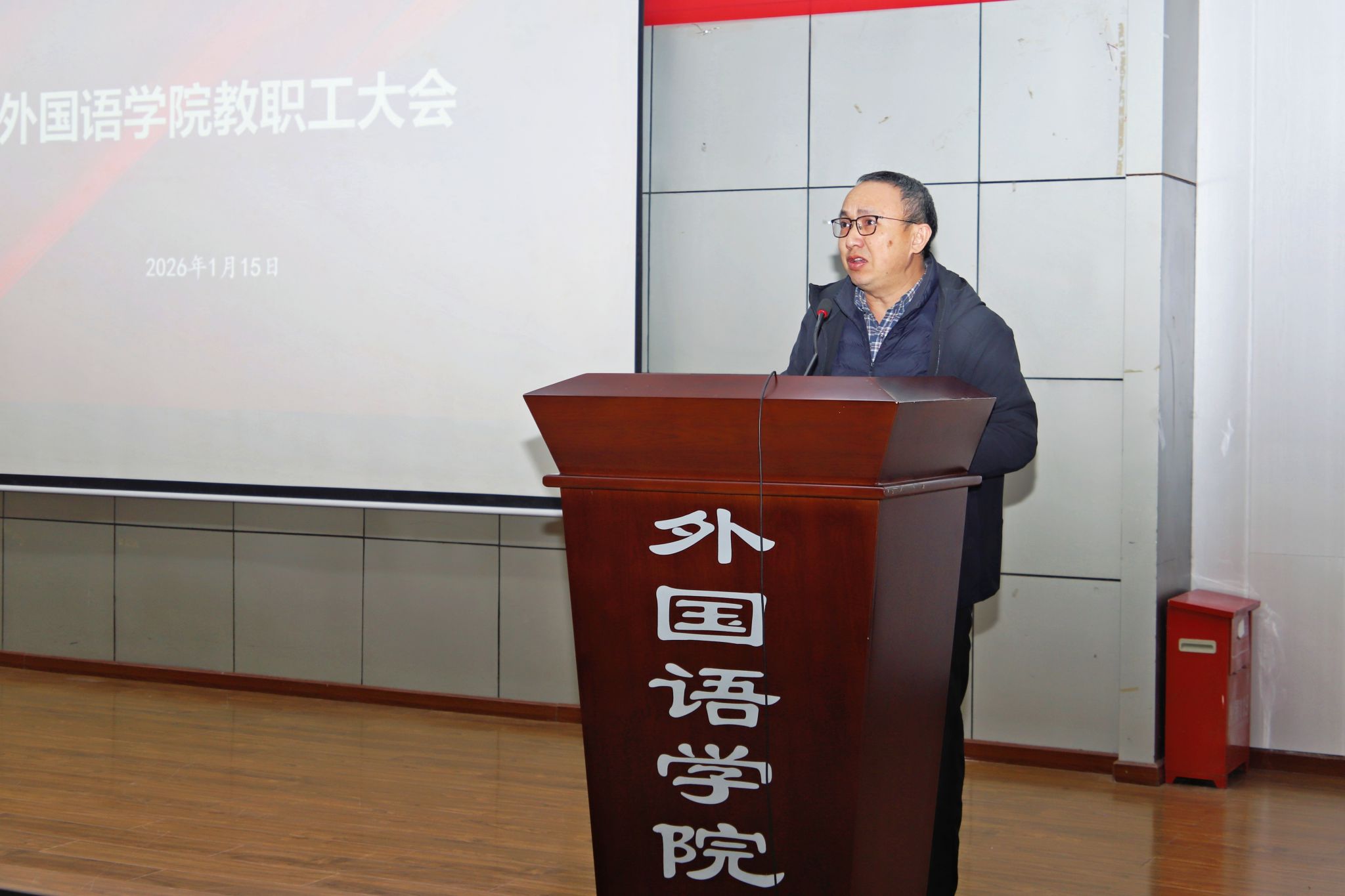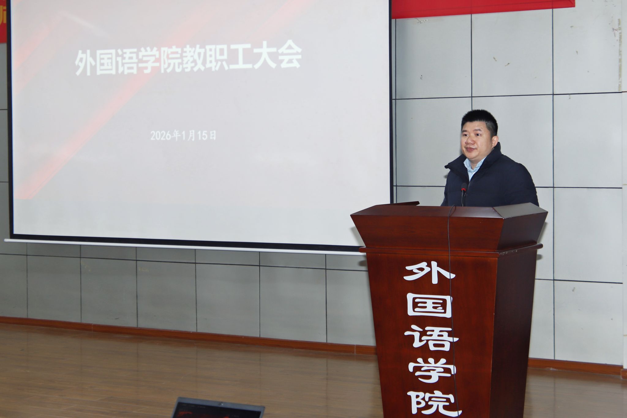 在学院楼二楼多功能厅召开全院教职工大会暨2025年度工作总结会。学院党政领导班子及全体教职工出席了会议,会议由学院党委副书记魏世平主持。