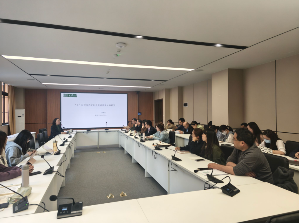 李孝英教授前往该校,作客蓝花楹学术论坛,以“基于语料库‘金’行中医药文化负载词英译认知研究”为主题作专题学术报告。本次论坛由川北医学院科技处主办,外国语言文化系、川北健康人文研究中心联合承办,在该校甘露书院南207会议室举行,药学院、外国语言文化系等相关专业师生到场聆听交流。