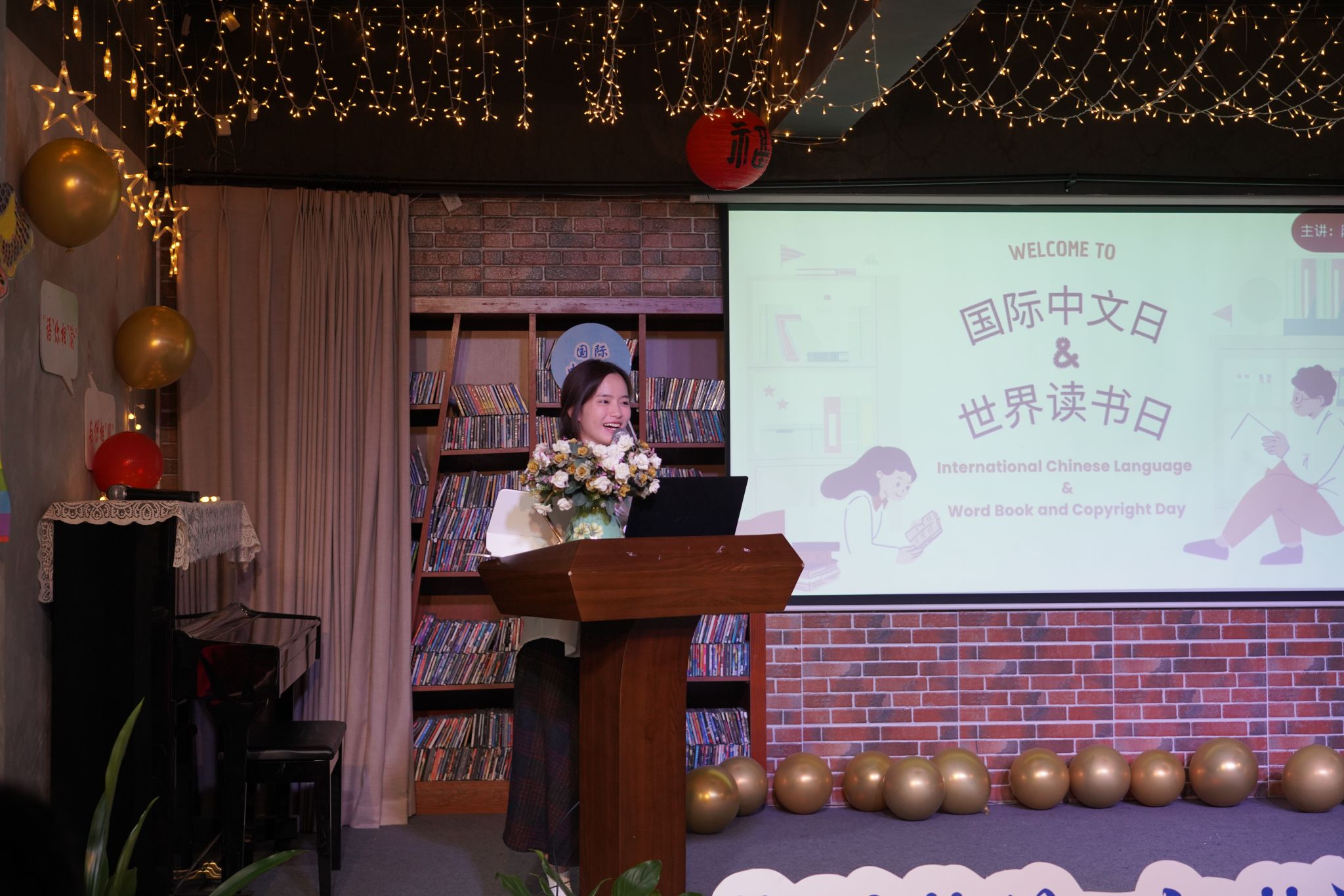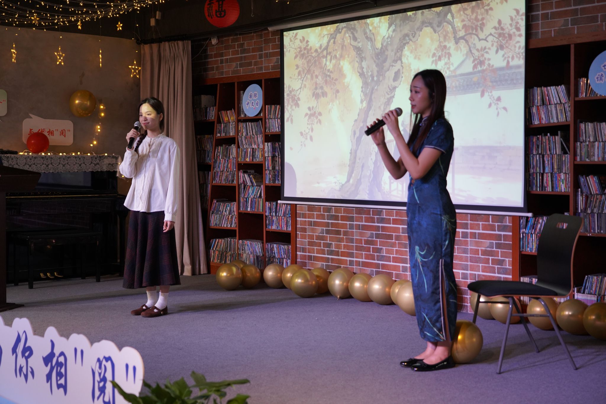 活动开场环节,大屏幕循环播放往届活动精彩回顾。留学生同学表演了朗诵经典散文《老海棠树》,深情的演绎为全场注入了温暖的书香气息。