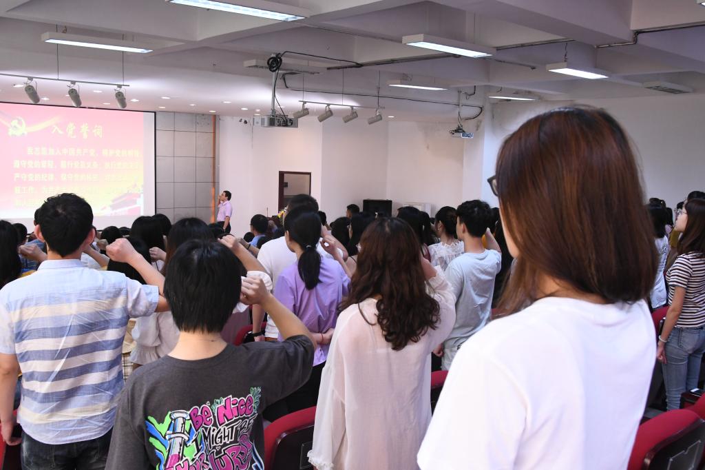 在何建华的带领下,预备党员进行了入党宣誓,老党员重温了入党誓词,大家面向党旗庄严宣誓。会议还进行了2019年“七一”党内表彰,何建华副书记、各学生支部书记为2019年学院创先争优活动涌现出的学生优秀共产党员、优秀党务工作者颁发了荣誉证书,并勉励与会学生党员不忘初心,牢记使命,在各年级、各班级树立好榜样,在学习和生活中进一步发挥模范带头作用。