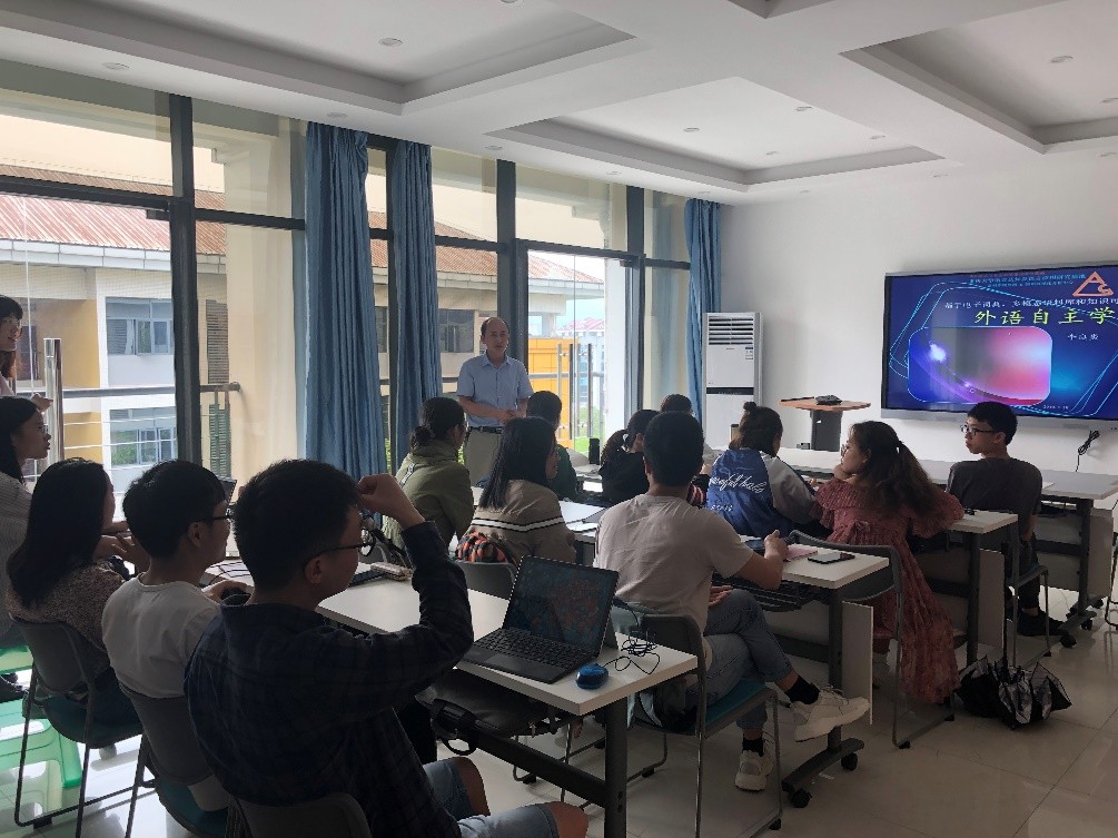 本次活动主题围绕“靠技术学习”这一主题,介绍了相关信息技术帮助学生尤其是二外和小语种学习者自主学习外语。李良炎博士首先与现场听众探讨‘’从小到大在英语或其他语种的学习中遇到的困惑?”接着,李老师引出今天要探讨的主题:“1993年第一部智能手机出现,标志着人类进入了移动智能信息化时代;然而,如何利用这些技术切实高效地学习外语仍然存在问题:信息技术应用并不充分,反受信息爆炸和碎片化之害。“然后,李博士介绍到:‘’外语学习中不使用信息技术如同在铁器时代使用石器,使用信息技术却出现负面反应如同使用铁器不当反被铁器所害;《论语·魏灵公》有云:‘工欲善其事,必先利其器。’在人工智能技术强势替代大量中低端译员的时代,外语学习虽然面对巨大挑战,但也面临巨大机遇;熟练的外语人才仍然不可或缺,靠技术学习,为技术服务,应当是外语学习的两大要求。“