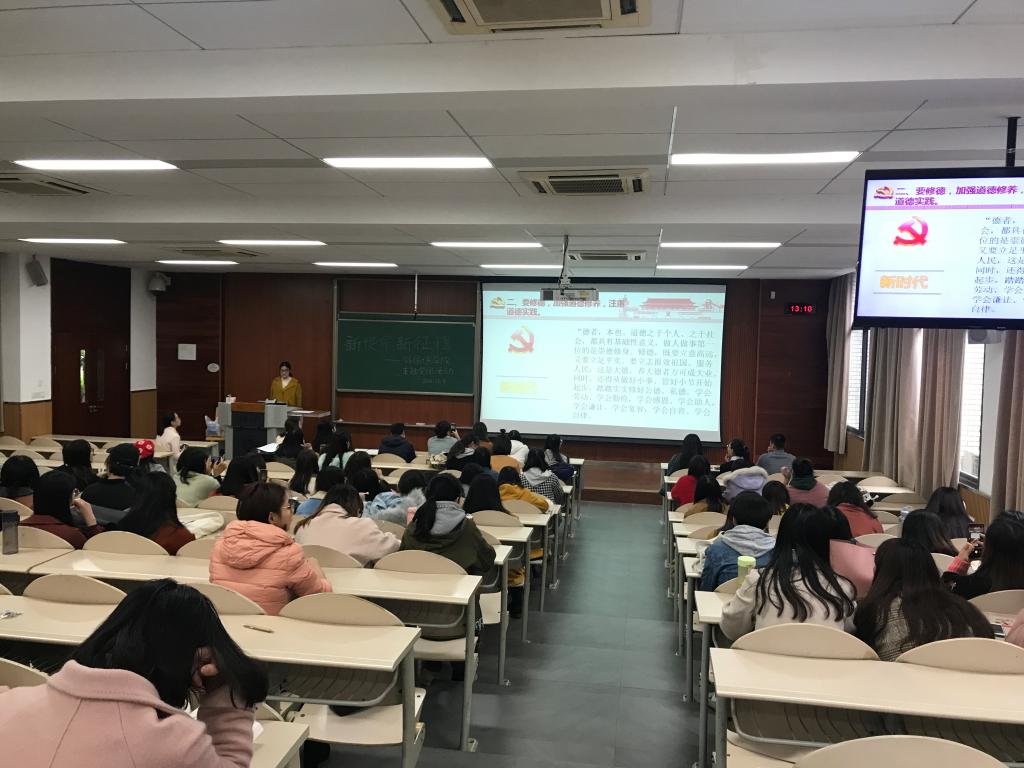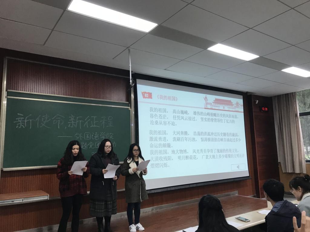 研究生在第一教学楼D1131召开了“新使命、新征程 — 走进新时代”的主题党团活动。活动的第一个环节,主持人杨华带领大家解读习近平总书记在北京大学学生座谈会上的讲话,使同学们深刻理解习近平总书记对新时代大学生的殷切希望,以及现代大学生应承担的责任。