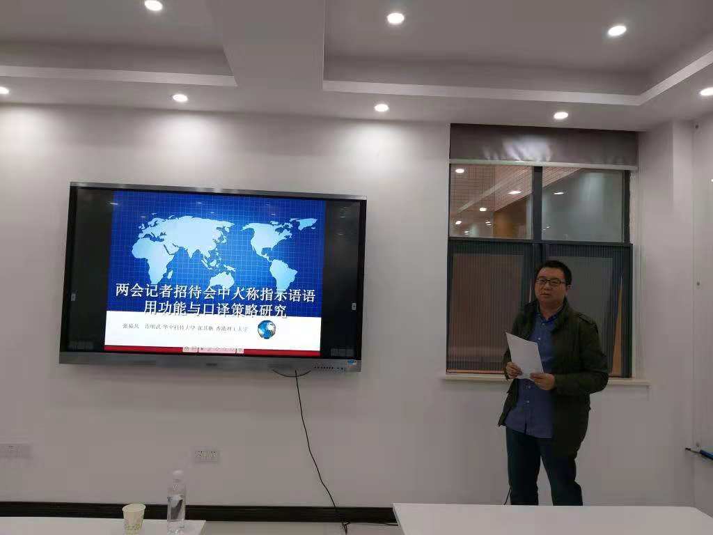 张易凡博士首先从自己多年从事口译工作的经验出发,谈及了翻译,尤其是口译研究中的问题及思路,然后张易凡博士再以自建语料库和近20年语料为基础,以人称指示语在汉英口译翻译中的表现为考察对象,探索并分析了中国两会总理记者招待会汉英口译(简称记者招待会汉英口译)中人称指示词的使用特征、语用功能及翻译策略。张易凡博士口译经验丰富,曾为比利时国王、智利前总统、李嘉诚先生以及数任湖北省委书记及省长等多位政、商界要人担任过数百场国际会议口译员,他从自身的实践经验出发,为大家奉献了一场接地气的精彩讲座。