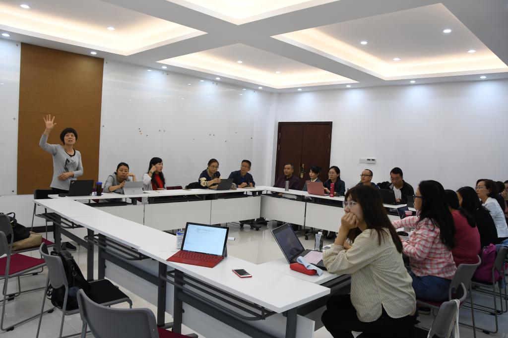 2018年9月14日上午,由邹晓玲教授领衔的外语教育技术研究室开展了本学期第一期专题工作坊,针对老师们在教学研究中遇到的研究方法和数据分析等问题进行专题讨论。工作坊由邹晓玲教授主持,欧玲书记、李小辉副院长等学院20余名老师参加了此次工作坊。