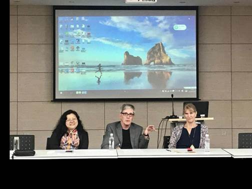 围绕工作坊的主题,Timothy Corrigan教授与Marcia Ferguson博士首先分享了他们在文学与电影、戏剧、历史等跨学科领域求学、研究和教学的经历与体会,Timothy Corrigan教授回溯了美国跨学科研究的兴起与发展,介绍了美国相关高校特别是宾大的文学与其他学科的跨学科课程的设置和历时发展,Marcia Ferguson博士结合自己不同学科的学习、研究和行业实践,分享了她的英语戏剧教学的经验,以及她在18漫画