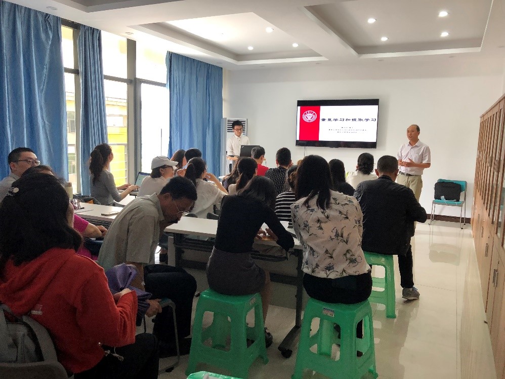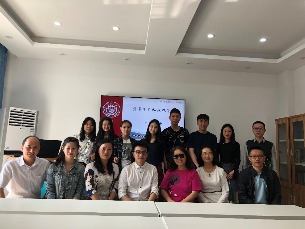 引进人才科研启动项目。在下午的讲座中,曹博士首先介绍到:“人脑对信息的处理包括感觉输入、编码、存储、提取和输出。研究发现:学习或记忆某些内容时,进行测试(对学习过的知识进行提取)比重复学习能更好的促进学习内容的长时记忆;同时,提取也能提高学习者在编码阶段的学习效果。”随后,曹博士介绍提取学习的几种方式包括“设疑式、启发式及提问式”。最后曹博士引出探讨的问题:“提取学习对外语学习和教学的启示?重复学习和提取学习,哪一个效果更佳?时间越久远或越是巩固的记忆,扣带前皮层的激活程度也越大?”