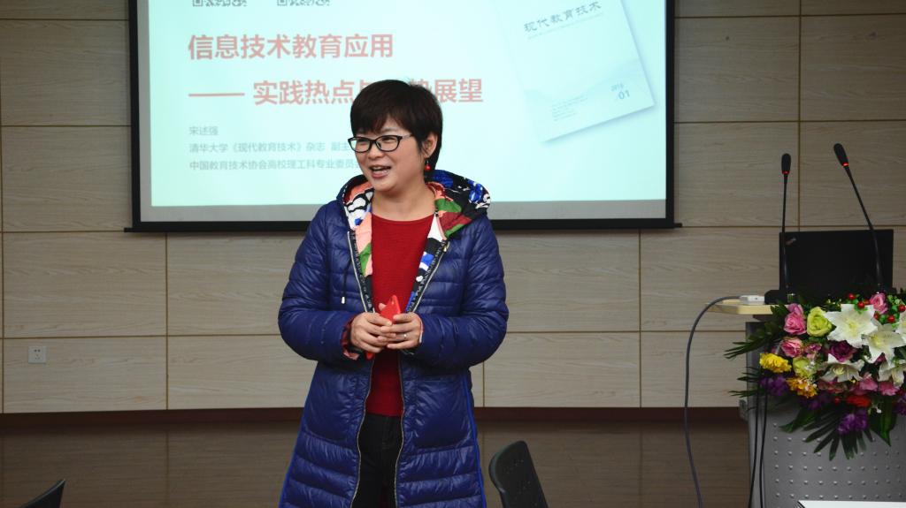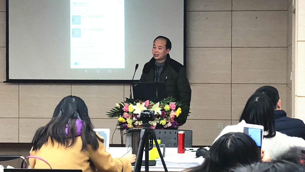 宋述强副主编首先以一个期刊编辑的角度阐释了目前外语教育技术的实践热点与发展趋势。在技术影响教育的大背景下,信息技术的发展而引发第四次教育变革,使教育和技术更为紧密结合,教学对象、教学资源、教学空间、教学模式及教学理念等多方面都发生了巨大变化。宋副主编还重点介绍了其团队和清华大学顾学雍教授的翻转教学成果,太极模型教学设计和极限学习过程,让在场老师更加明确教学合理设计的重要性。此外,宋副主编向在场老师们分享了信息技术教育应用的新热点和2018年《现代教育技术》期刊的重点选题,为外语教育技术类科研选题给出了重要建议,并推荐了文献管理、知识图谱、思维导图等实用工具,帮助老师们有效进行知识管理,助力学术研究。