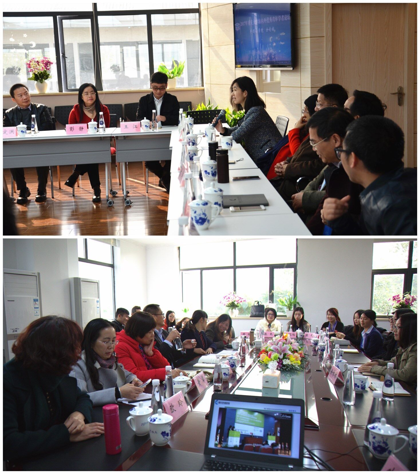 ,并在多方面给予大力支持,为优秀人才提供良好的教学和科研环境。彭静院长表示在各位青年才俊地助推下,学院在人才培养、学科建设、科学研究、队伍建设和国际合作与交流等方面都会有更大的进步。随后,为了帮助海外青年学者更好地了解国内各学科研究现状并促进学术合作, 廖七一教授、冉永平教授和刘立辉教授分别就翻译、语言学和文学研究现状和热点问题作了三场精彩的学术讲座。