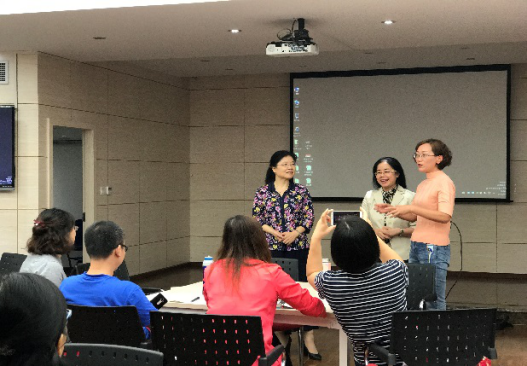 女性教师多的特点,徐锦芬教授首先从个人家庭主妇身份讲起,分享了如何处理好家庭、教学和科研之间关系的成功经历。然后梳理了从语言教学中师生关系、教师与教材,课堂环境的构建、教学方法、有效教学的特征、优秀教师的特征到教学评估、第二课堂及“互联网+”时代的学习等大学英语教学中所涉及的热门话题,并进一步就可以开展研究的方向及须要深入了解的理论框架做了详尽的介绍,同时徐教授还以她近十余年来发表的60余篇SSCI、CSSCI高水平论文为例,强调大学英语教学及研究本身就是每一个大学英语教师的事业,老师们要有培养敏锐的研究视角、打下扎实的教学实践和理论研究基础。第一场讲座之后,*18漫画