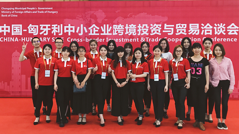 师生一行从虎溪出发,于10点左右到达重庆悦来国际会展中心,并迅速与中国银行工作人员对接,熟悉中方、匈方企业信息以及会议流程和安排,参观会场并熟悉各自负责的席位,为谈判顺利进行做了充分的准备工作。