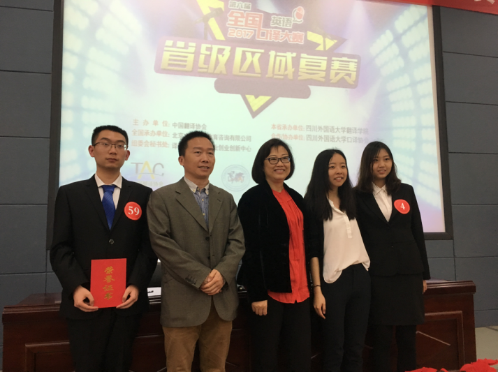 共派出三名选手参赛,他们分别是英语专业本科2014级的崔璨同学、翻译硕士研究生欧阳东雯同学和徐振浩同学,由指导教师范定洪老师带队。经过紧张激烈的角逐,最终崔璨同学、欧阳东雯同学荣获三等奖,徐振浩同学荣获优秀奖。