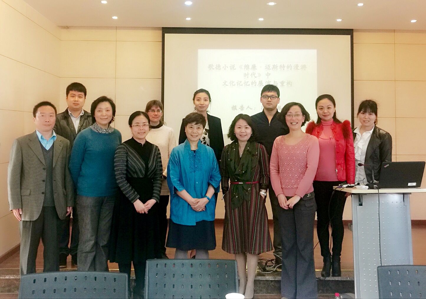 副院长范定洪主持本次活动,德语系全体教师以及英语和日语教师代表出席了本次教师发展工作坊。活动开始前,学院领导与冯教授及各参与者合影。
