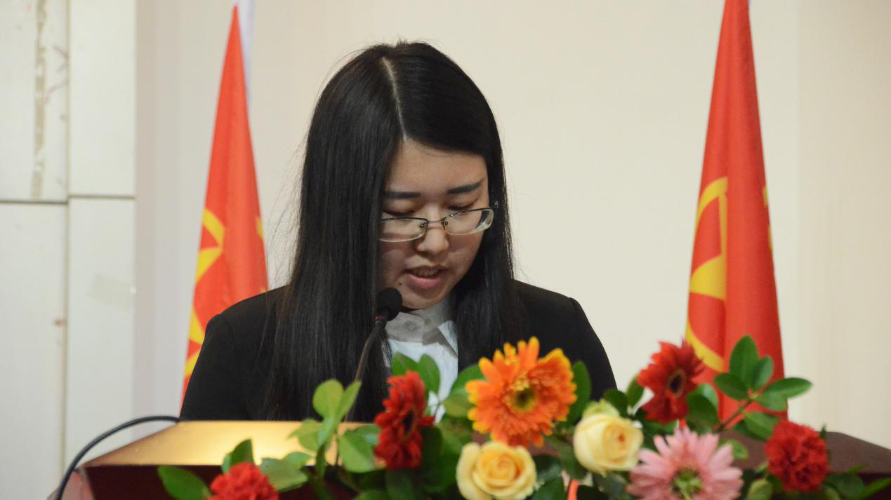 首先进行大会第一项,全体起立唱国歌。随后,团委副书记蒋方圆宣读院党委、校团委批复,传达了学院党委以及学院团委对于本次代表大会准许举办的精神。