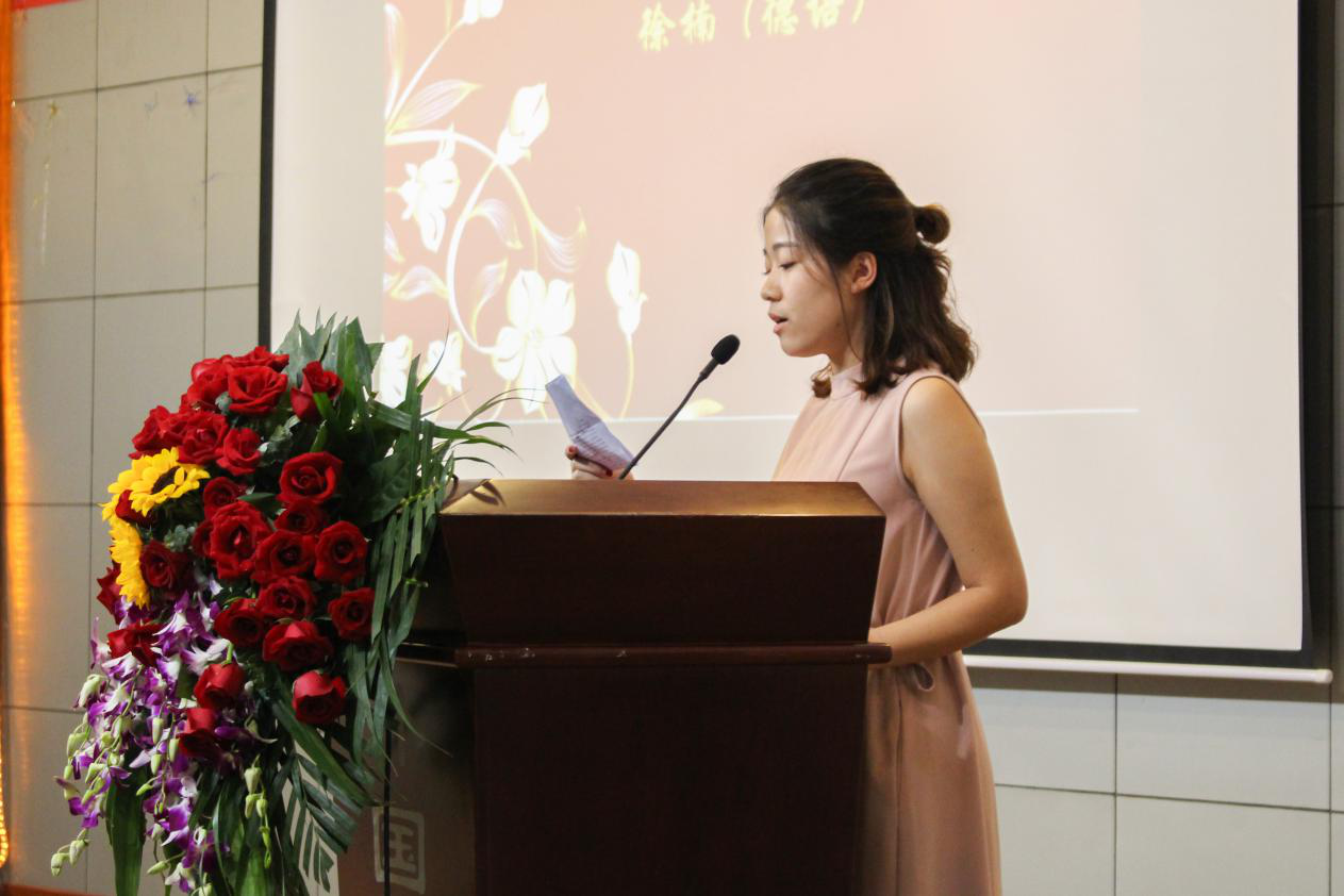 紧接着,2013级德语专业徐楠同学作为在校生代表发言。站在过来人的角度,她对在坐的各位16级新生传达了自己的希冀,“请记住,从开学第一天起,你们付出的每一份努力、做出的每一个选择,都在成就着你们四年后的样子。希望你们不负韶光,四年后能够遇见喜欢的自己”。