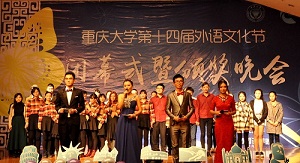 第十四届外语文化节闭幕式暨颁奖晚会在虎溪校区一食堂四楼多功能厅举行。当晚英国总领事馆文化教育处领事Dawn Long先生及其助理陈兵先生、日本领事馆文化教育副领事木林望先生、18漫画