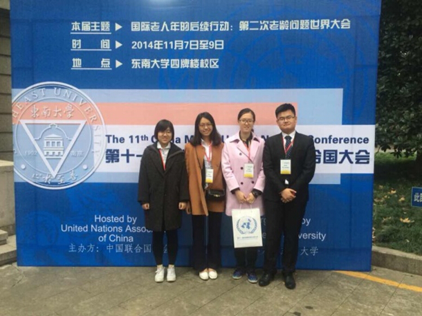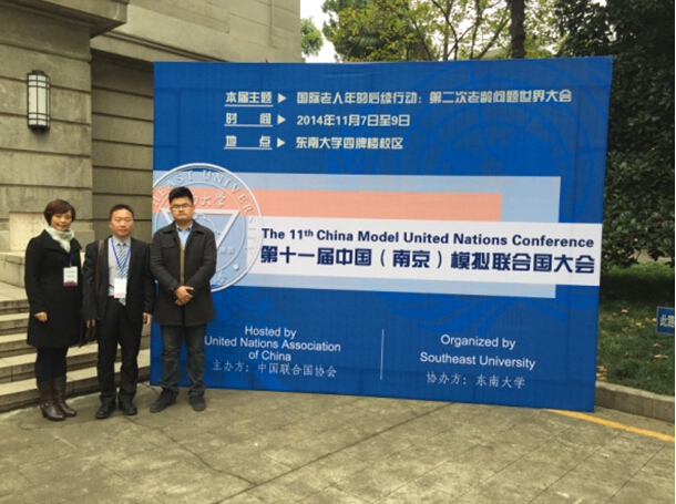 2014年11月7日至9日,由中国联合国协会主办、东南大学承办的第十一届中国模拟联合国大会在南京东南大学四牌楼校区召开。参加者主要是来自国内外120余所大学的青年精英学子。本次会议的中心议题是老龄化问题,分设“老年人虐待及暴力侵害的防范”、“老年人心理健康促进与精神障碍预防”、“老年人体面工作的提供与就业保障”三个分议题进行讨论。学生们扮演不同国家的“代表”,围绕中心议题,以国家利益为思考的出发点,就议题陈述自己的观点、据理力争,寻求 “盟友”,极大地锻炼了学生的换位思考能力、沟通合作能力、创新思维,有助于他们国际视野和世界胸怀的养成。