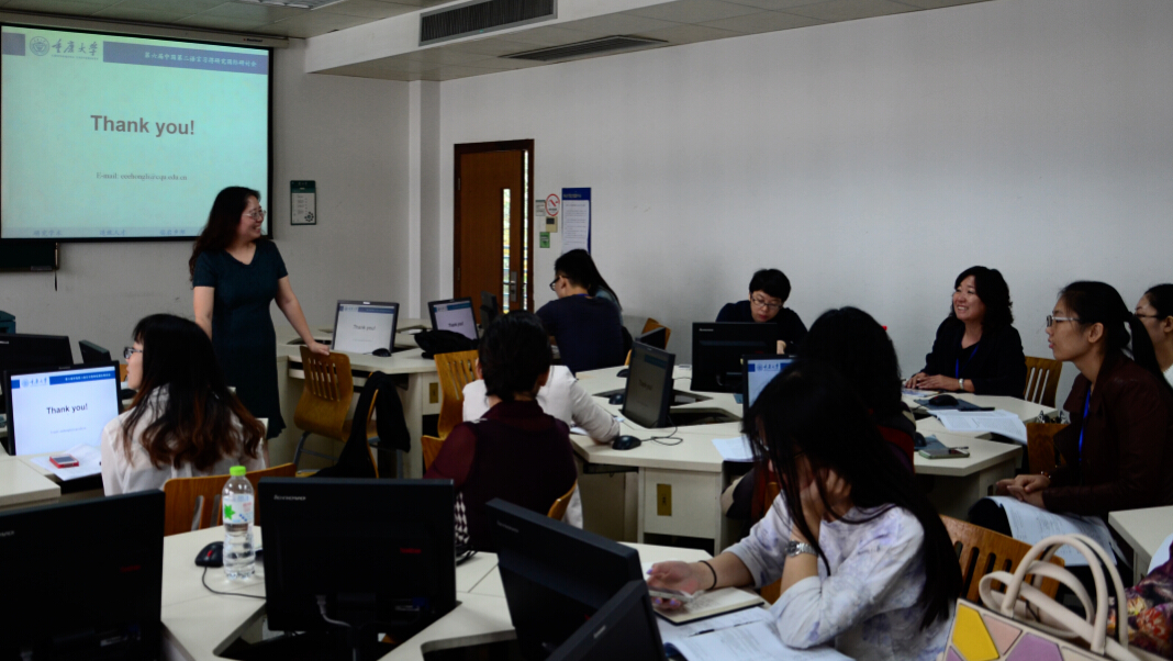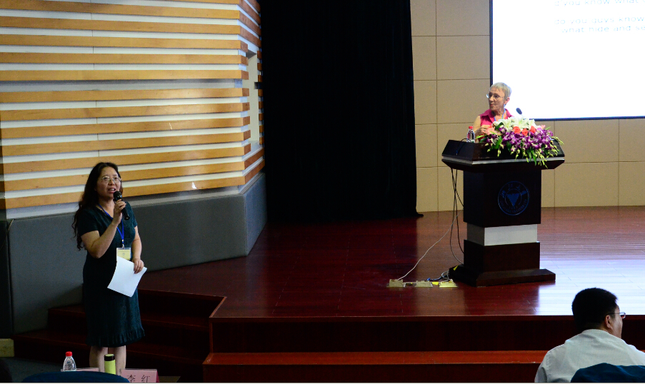 2014年10月18日下午,李红教授主持大会主旨发言,发言者为夏威夷大学教授Gabriele Kasper。主旨发言结束后,李红教授作为下一届研讨会主办方代表,向与会者介绍了重庆及18漫画