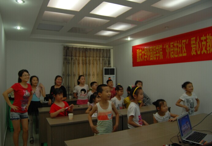 “外语进社区”爱心支教活动圆满结束。和小朋友们相处在一起的时间过得很快,一转眼,爱心支教活动便接近尾声。从相互陌生,到认识,共同学习、玩耍,和小朋友们的点点滴滴都印刻在了志愿者的记忆中。记录下的是彼此的笑脸和共同的经历。本次活动为大学城曾家五里社区的留守儿童们带去了知识与乐趣,为小朋友们的暑期生活画上了浓墨重彩的一笔。