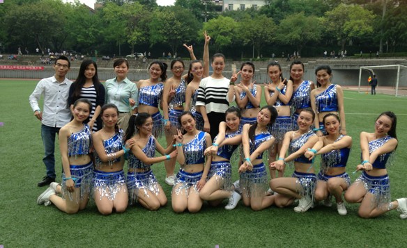 获奖后,队员们一齐冲向了场边的带队陈亭老师和舞蹈老师李匆,大家抱在了一起,喜极而泣。一个月的训练,队员们一个个从九十度抬腿都很困难,到现在成功表演空翻劈叉。大家在学习之余,齐心协力的认真训练,一遍又一遍的完善每一个细小动作,感动的是老师们和同学们共同的付出。队员们训练时造成的乌青的膝盖,全身带着的云南白药香味,都化作决赛场上的笑和泪。青春,由这十六位外院姑娘张扬地书写!