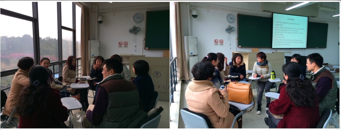 2014年2月20日,创新课程组全体教师在参加了大学英语教育中心组织的提高课程会议之后,在DZ513召开课程组教研会议,针对开学第一周教学情况进行了情况分享。此次教研会议主题主要是了解在课程整体大纲规划之下,各位老师是如何对本学期教学计划,小组项目实施安排,平时成绩分配方案,以及第一周教学中存在的问题。整体上,老师们都清楚本学期教学任务重,特别是小组项目的展开后,全体老师将从第二周开始对学生进行专题辅导。此外,此次会议还确定了本学期项目研究专题讲座。并决定于第二周星期三晚7:00面向全体创新课程组学生进行第一次专题讲座,让学生明白为什么我们要在英语教学中进行项目式教学,我们能够进行什么样的项目,以及怎样进行项目研究。后期专题讲座将会重点对文献综述写作、研究数据搜集及分析、研究报告的写作以陈述等进行专题讲座。