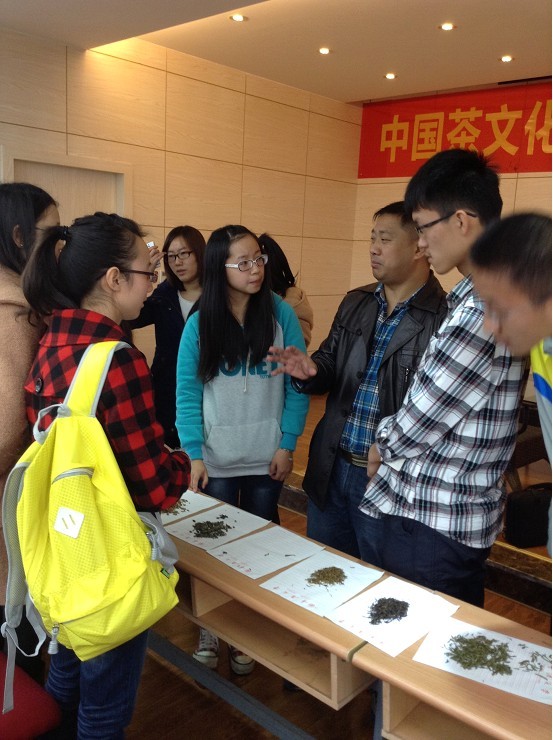 讲座开始前,同学们每人都分得了一杯茶,在在浓浓的茶香中,讲座开始了。讲座以郑板桥的故事作为开头,讲述了茶的历史、茶的分类、中国的名茶、喝茶的作用、茶具的认识、茶礼茶道、喝茶注意事项,列举了大量的文化名人事例,生动地叙述了关于茶的故事。