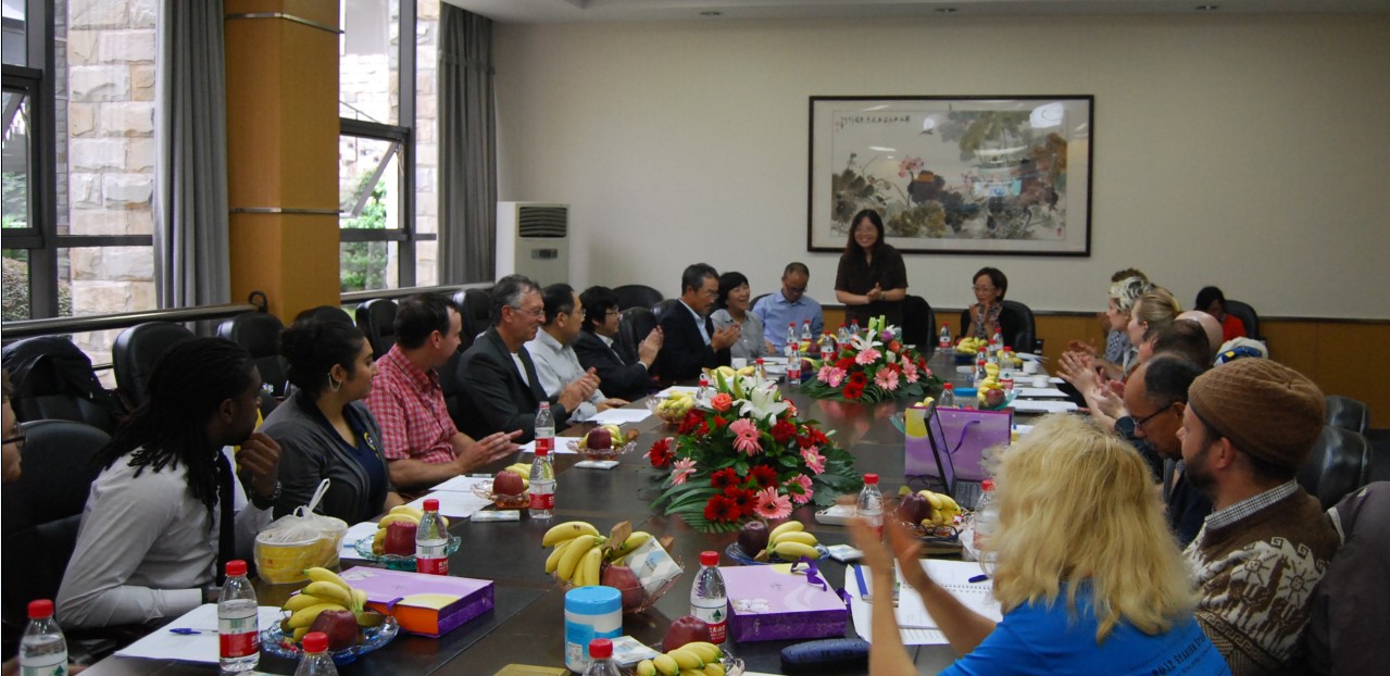 党委书记余渭深、院长李红、副院长欧玲、董平荣,学院大学英语、教务、外事等方面的管理人员以及已经到岗的全体20名外教参加了本次欢迎会。